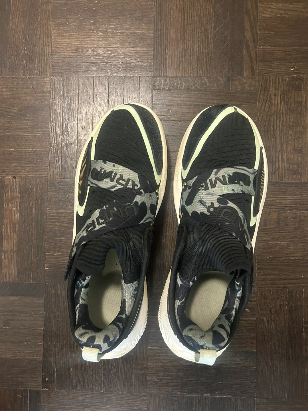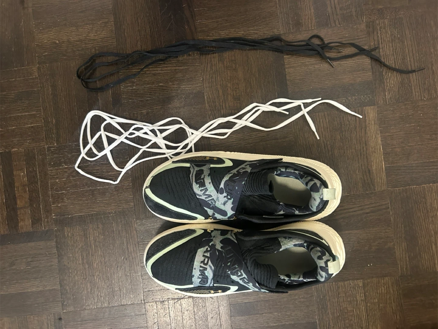 Selling a pair of Under Armour Flow FUTR men's shoes. They are in good condition and come with extra laces. Great for sports or casual wear!