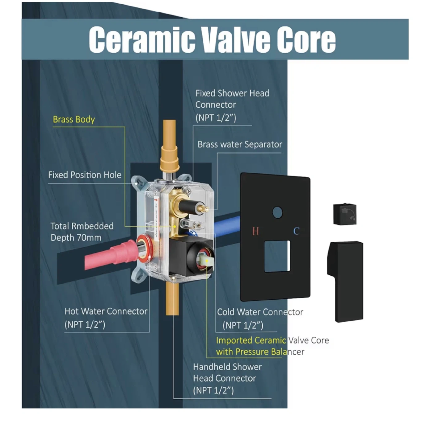 5Selling an Aolemi 2 Functions Shower System. It features a shower head and a handheld spray for a versatile shower experience. The shower head angle can be adjusted to your needs, and the air technology provides a high-pressure shower. It also includes a 59" stainless steel hose.