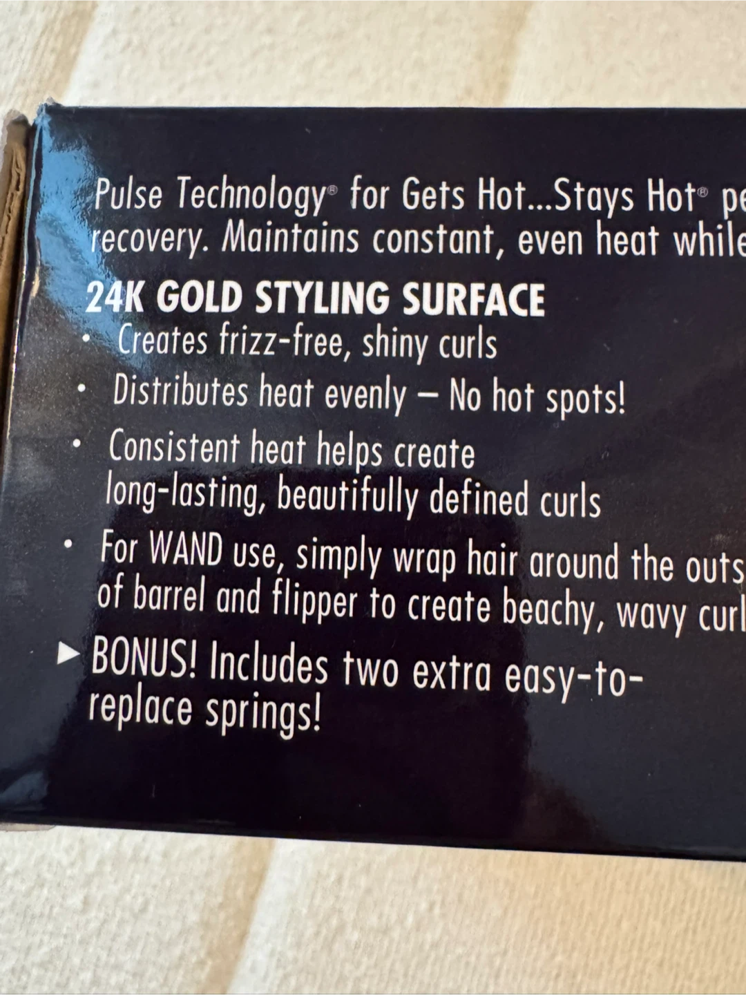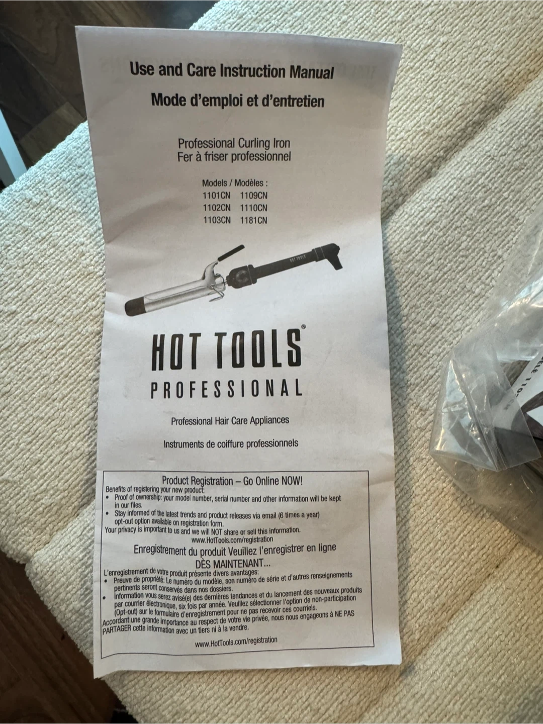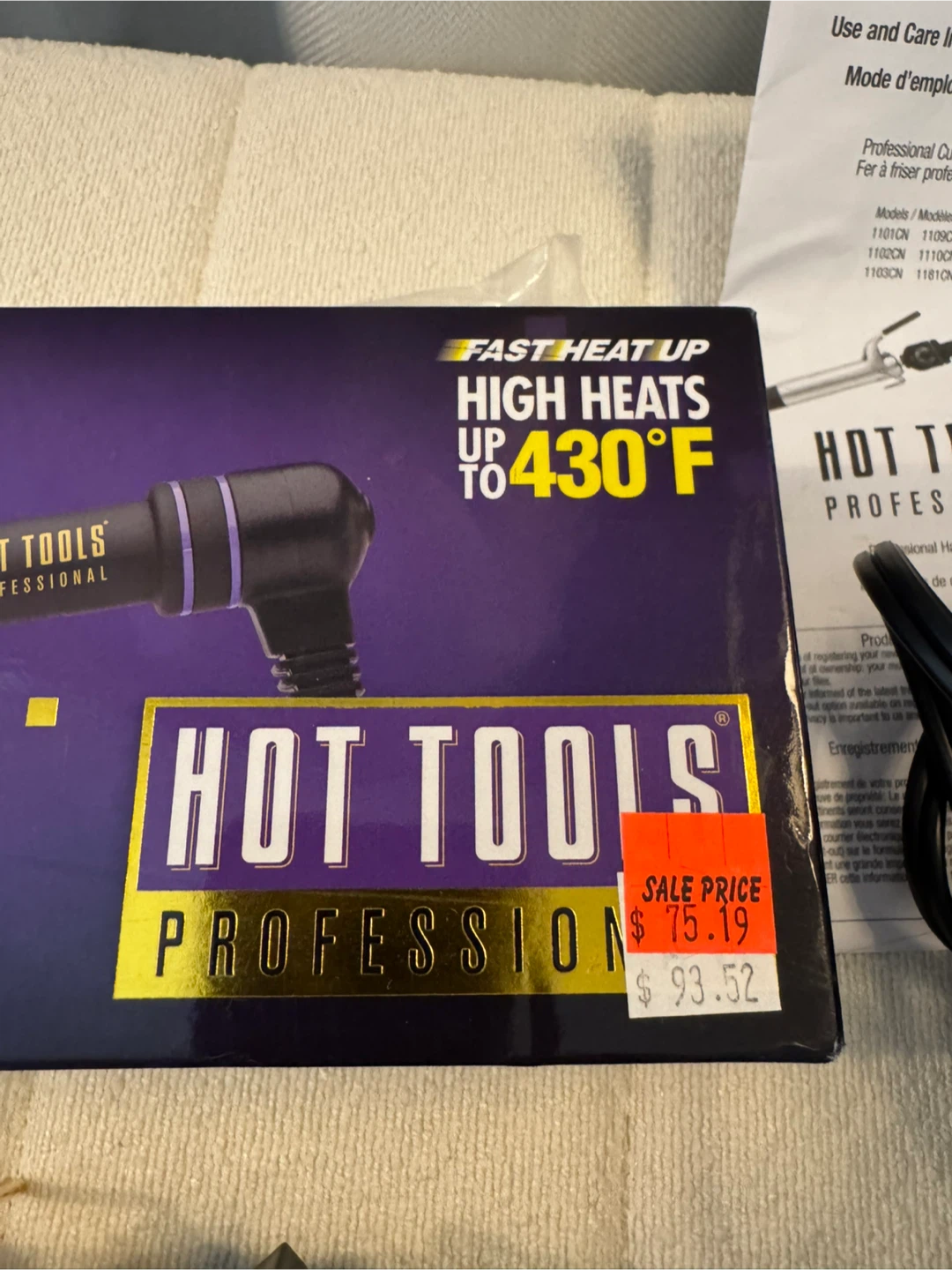 Barely used!!! Hot Tools Professional 1 1/2" Salon Curling Iron/Wand - 24K Gold. This curling iron heats up to 430°F. It features rheostat control with variable heat settings, an extra-long cool tip, a power indicator light, a soft touch handle for comfortable grip, and a separate on/off switch. It also has an 8 ft professional cord. I paid sale price and it has been used on a couple of times. Basically brand new 🙂