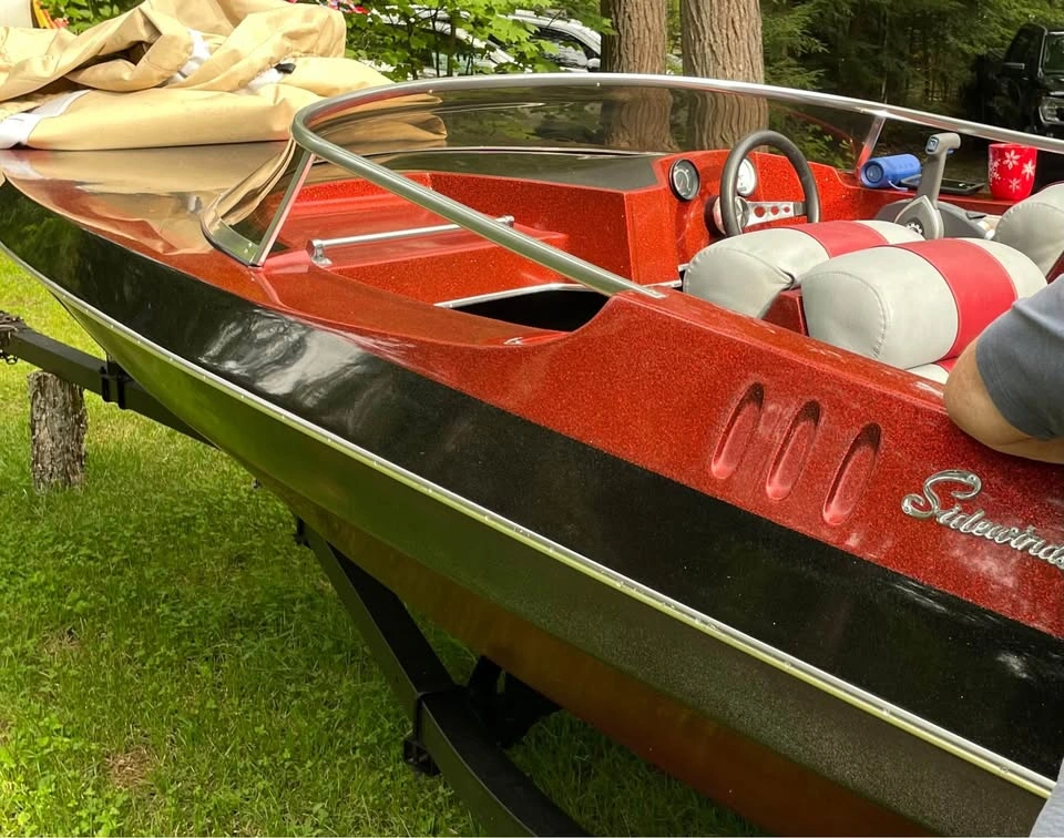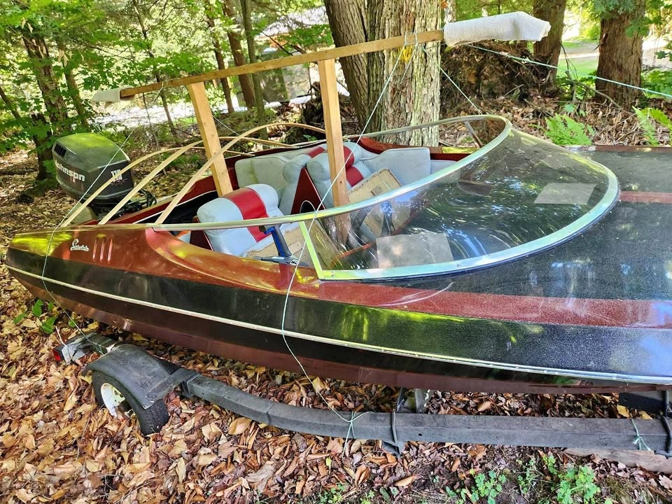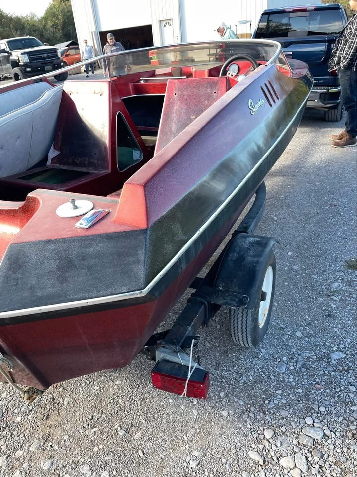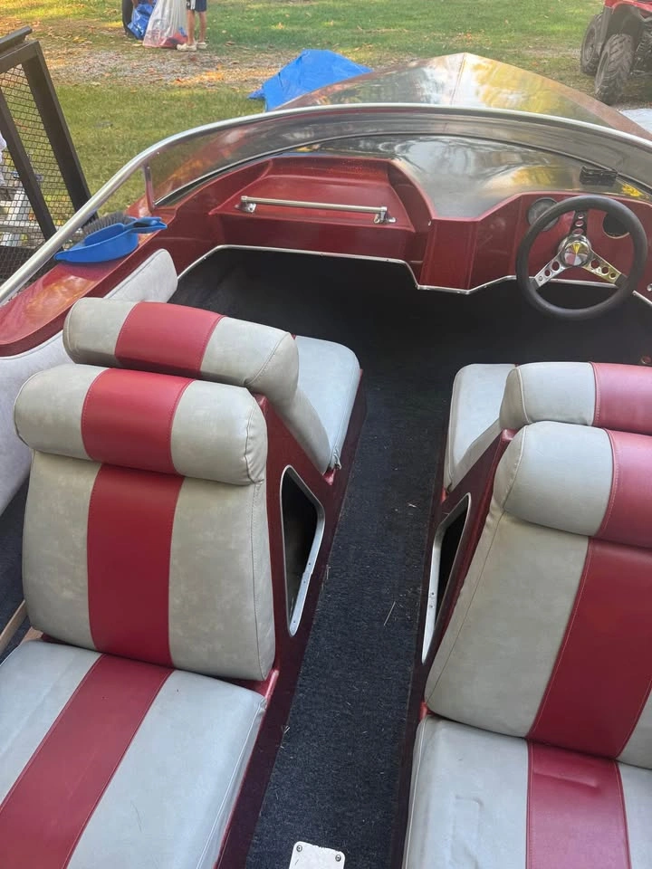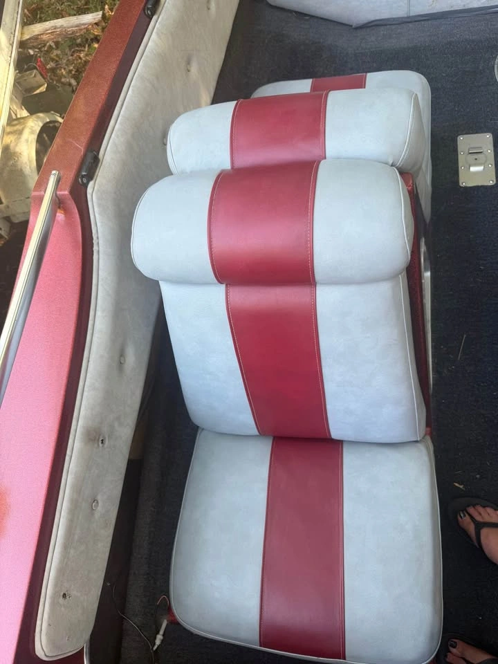 Floor has been redone from mid boat to bottom end, transom has been replaced and upholstery has been redone for the seat cushions! Comes with ski bar & on trailer!