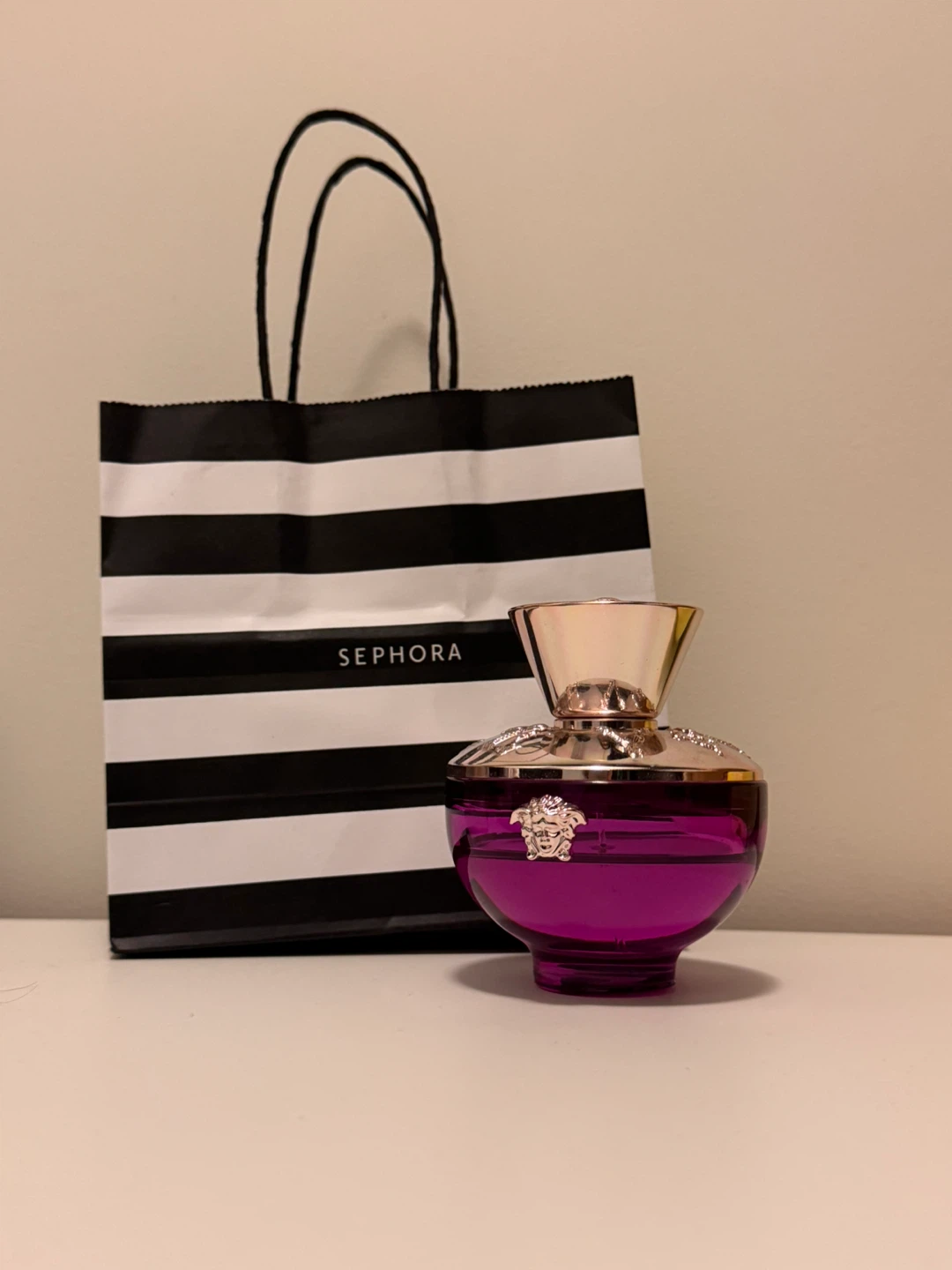 Selling an original Versace Dylan Purple Eau de Parfum, 100ml. It's a natural spray, and the bottle is in great condition! Selling this one to get a new scent. It retails for $188 + tax in Sephora. There is more than half left in the bottle.