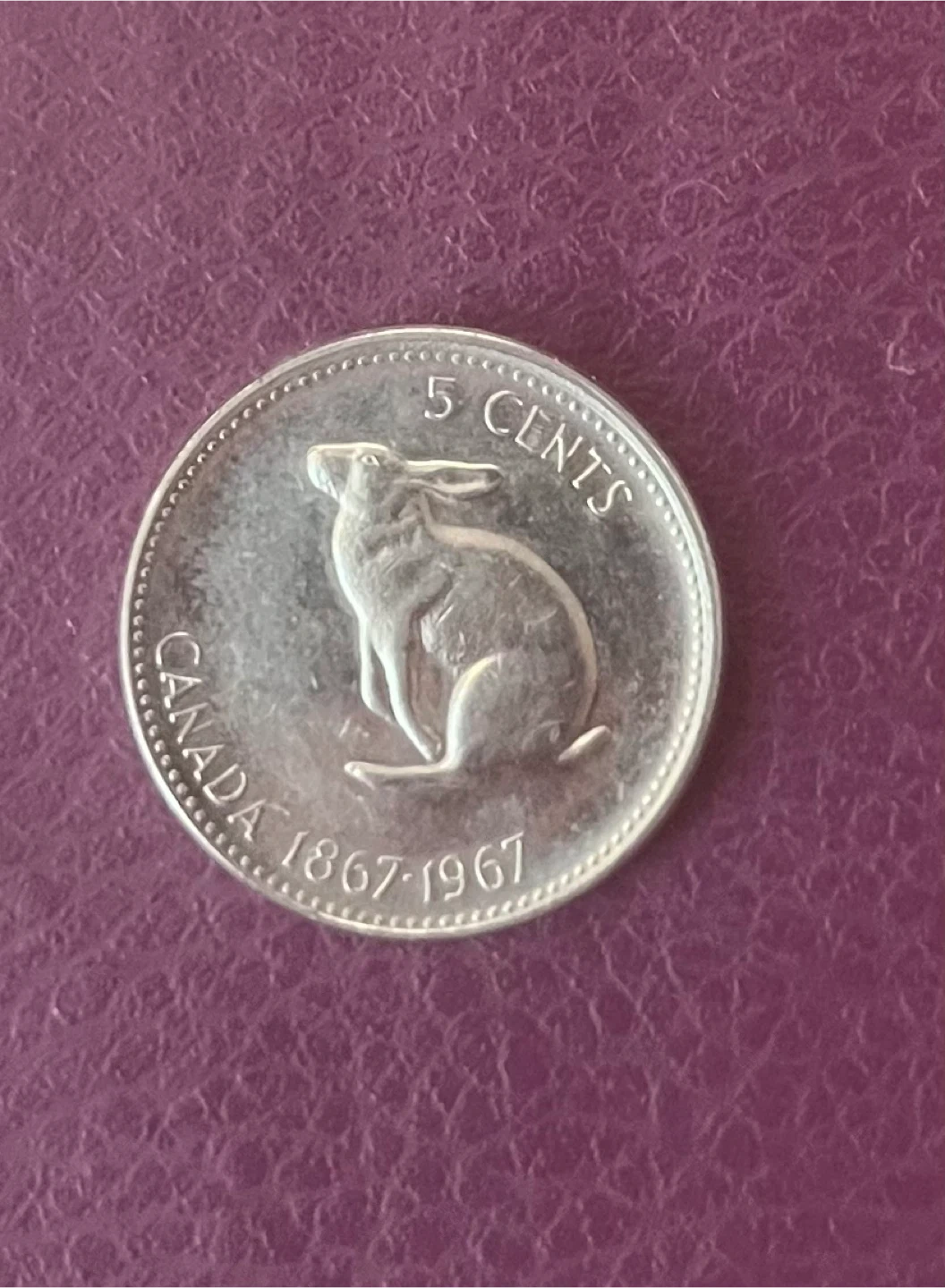 284Selling a 1967 Canadian 5 cent coin featuring a hare. A unique piece of Canadian history!