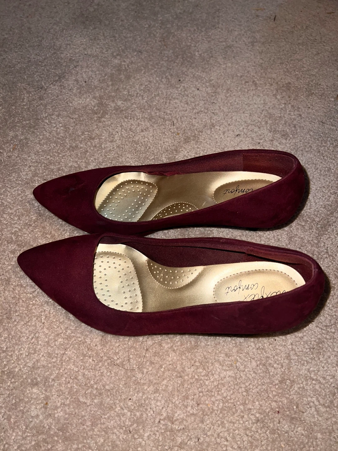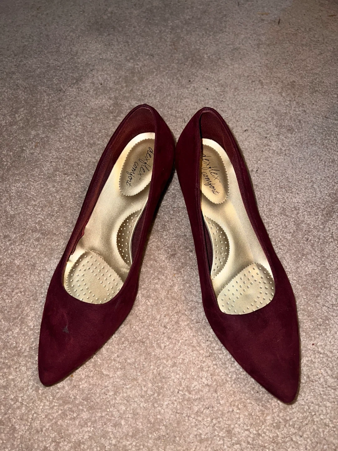 65Selling a pair of Flex Comfort heels in a lovely burgundy colour. They're super comfy and perfect for dressing up or down!