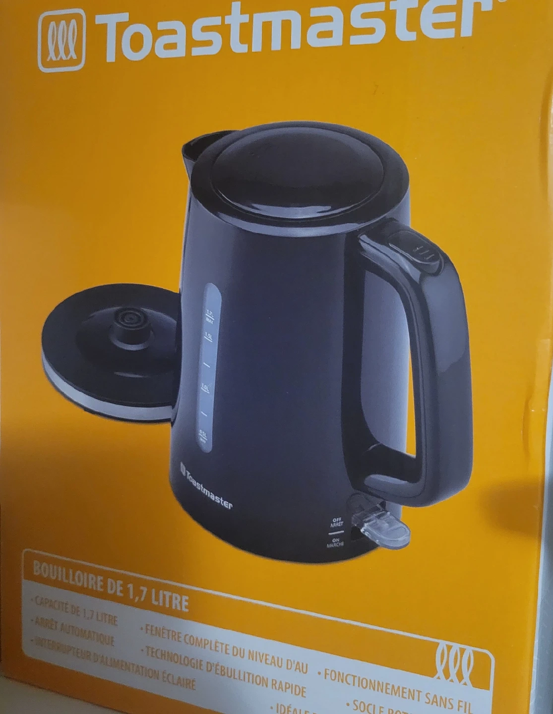 Selling a brand new Toastmaster kettle! It has a 1.7L capacity and an automatic shut-off feature. Brand new in box