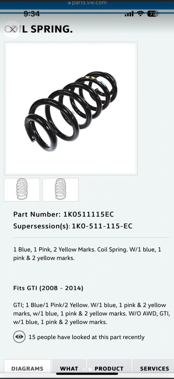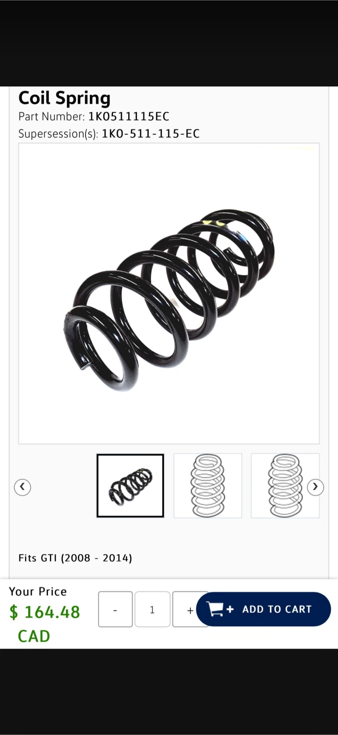 Buy & SellVW GTI Coil Spring - 1K0511115ECVW GTI Coil Spring - 1K0511115EC$30Selling a coil spring for a VW GTI, part number 1K0511115EC. It fits GTI models from 2008 to 2014. The spring has 1 blue, 1 pink, and 2 yellow marks.ConditionGoodWHERE TO MEETCheck LocationView MapSELLERverifiedShawnBolton1164 reviews0 chats·0 favorites·13 viewsSEND CHAT TO SELLERHi Shawn! I’m interested in your listing.Hi Shawn! I’m interested in your listing.Get the Karrot app to chatSign In to chat