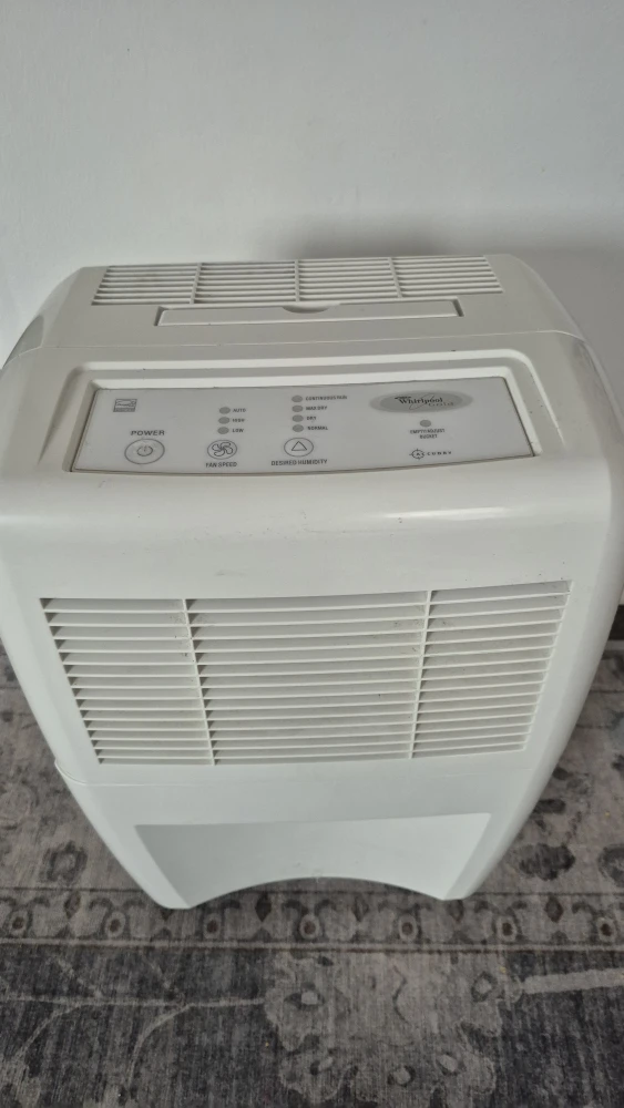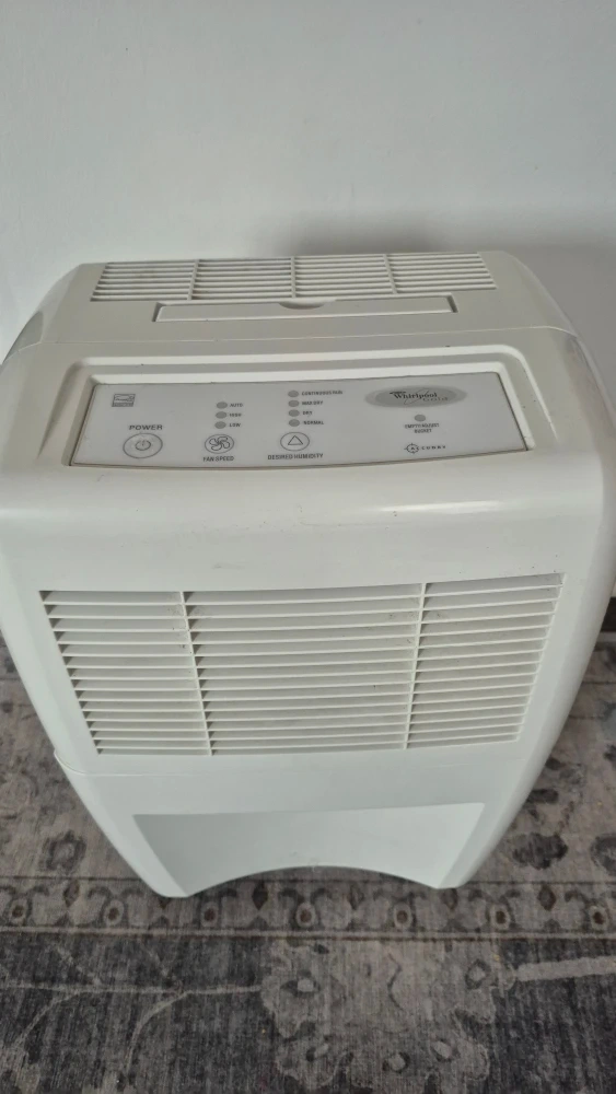 Selling a Whirlpool dehumidifier in white. It's in good working condition and ready to help keep your home comfortable. Great for reducing humidity and preventing mould!