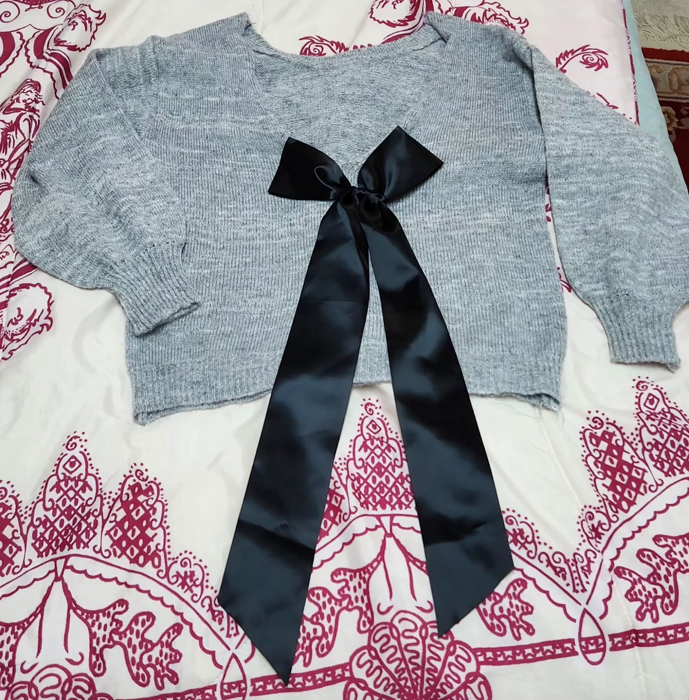 130Selling a cute grey knit sweater with a stylish black bow. I Brand new. Perfect for adding a touch of elegance to your wardrobe!