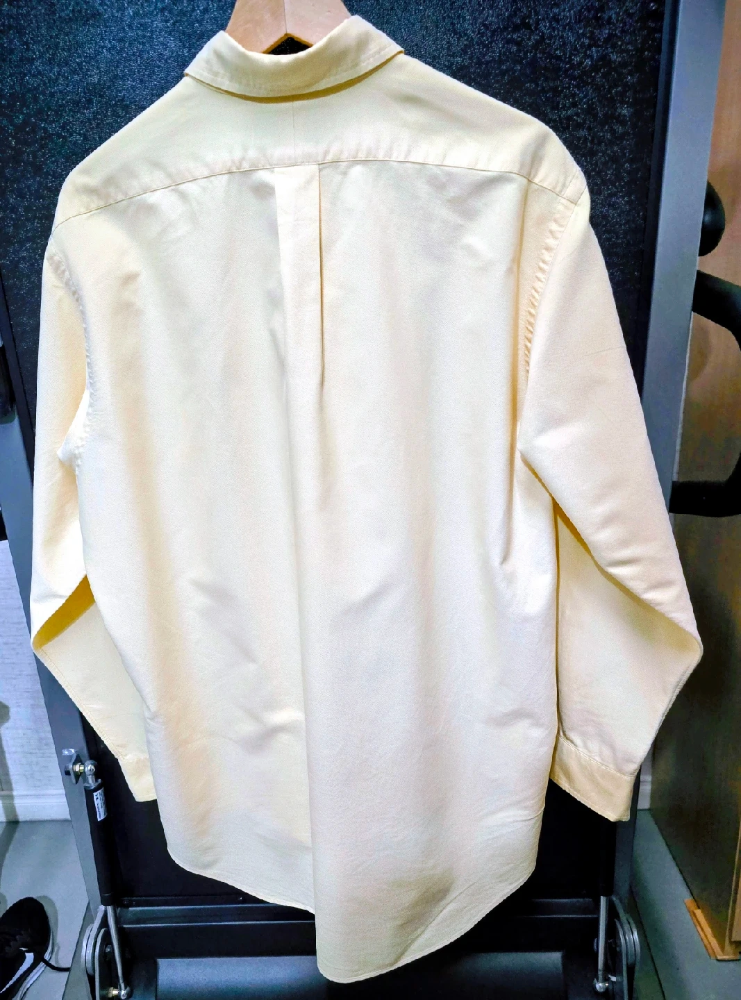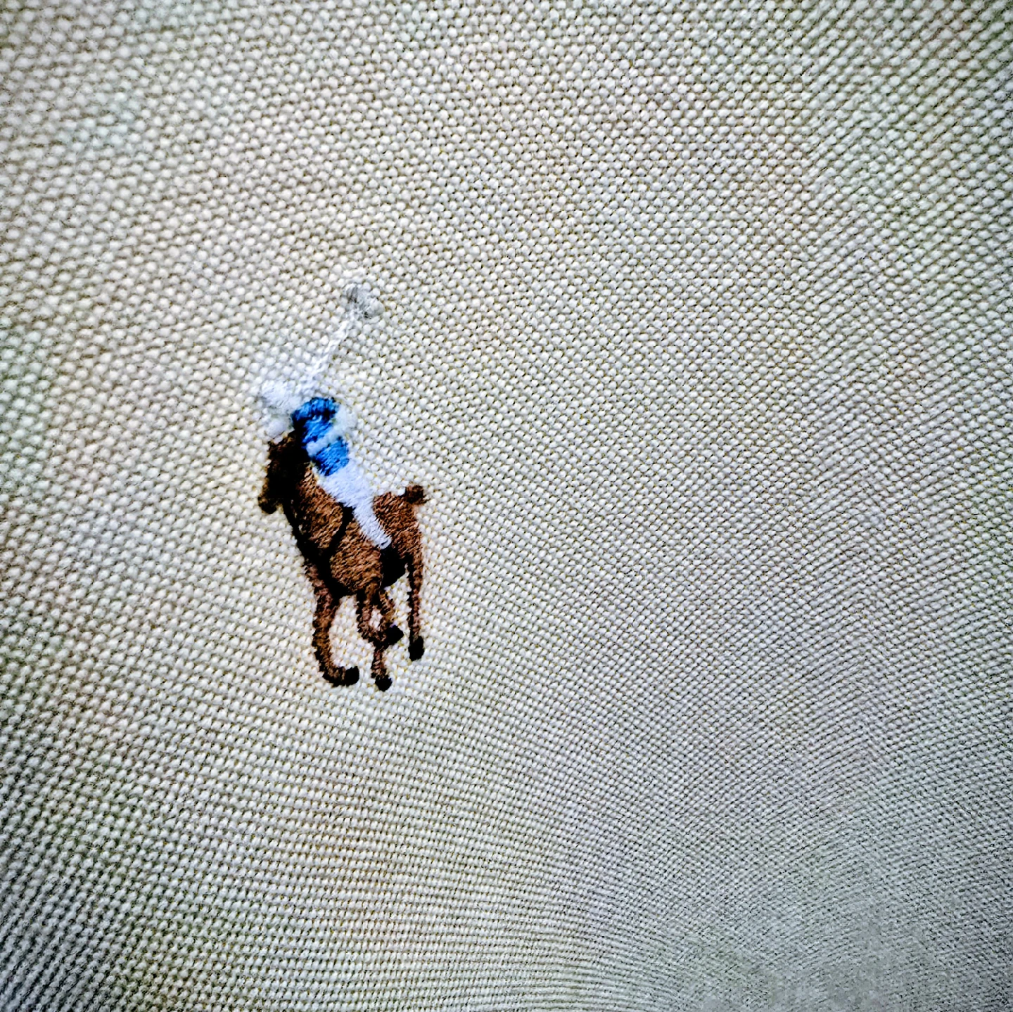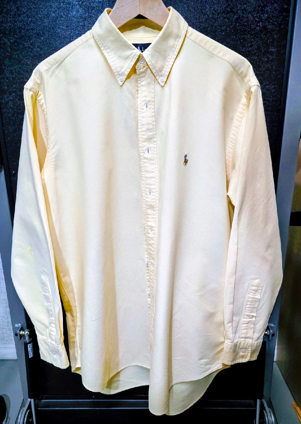 Selling a classic Ralph Lauren Yarmouth button-down shirt! It's a size 16-34 and made of 100% cotton. The shirt is a light yellow colour and features the iconic Ralph Lauren logo. Perfect for a smart-casual look!