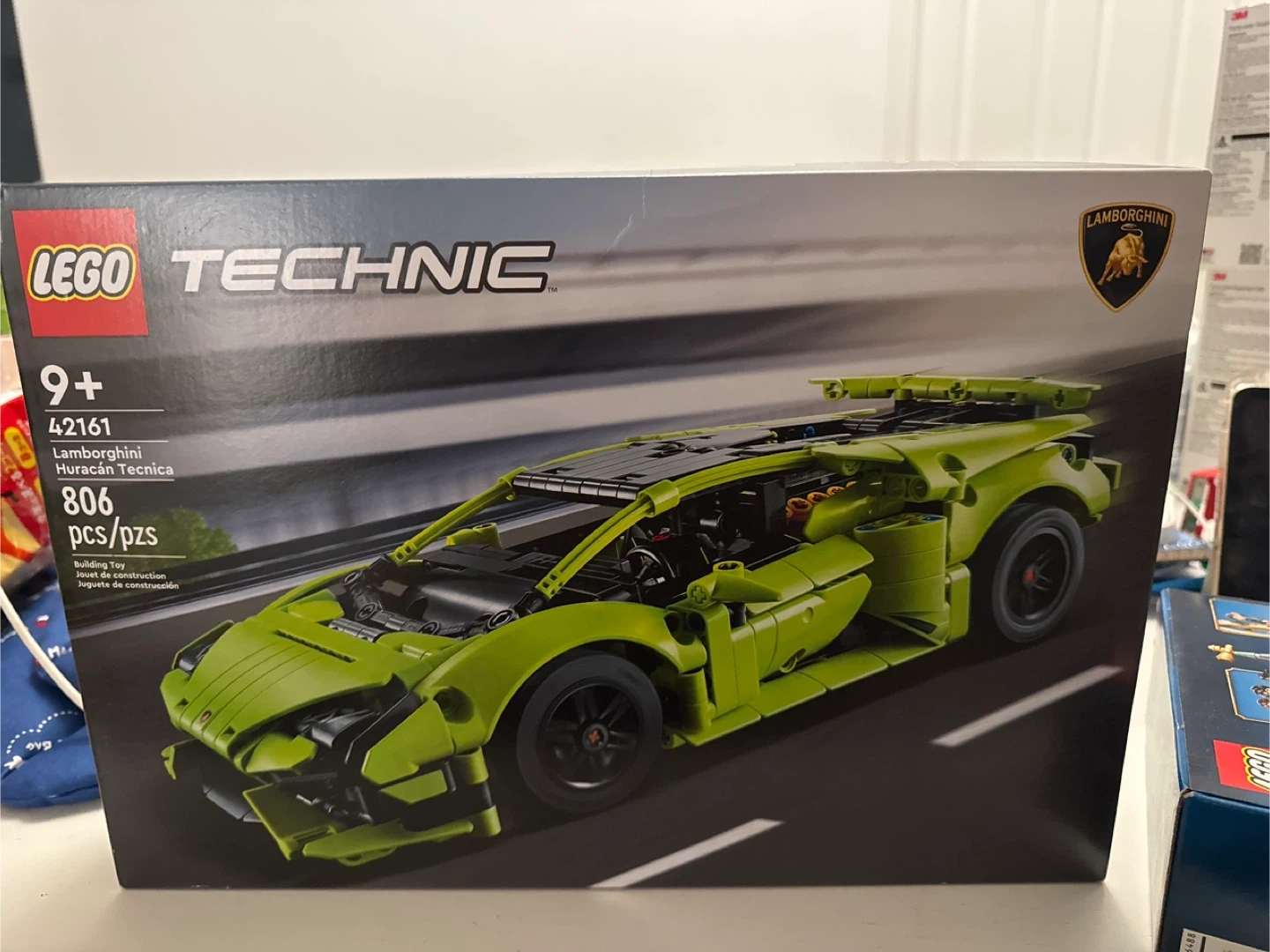 Selling a LEGO Technic Lamborghini Huracán Tecnica, model number 42161! This set is suitable for ages 9+. It contains 806 pieces for building the toy. The box is included.