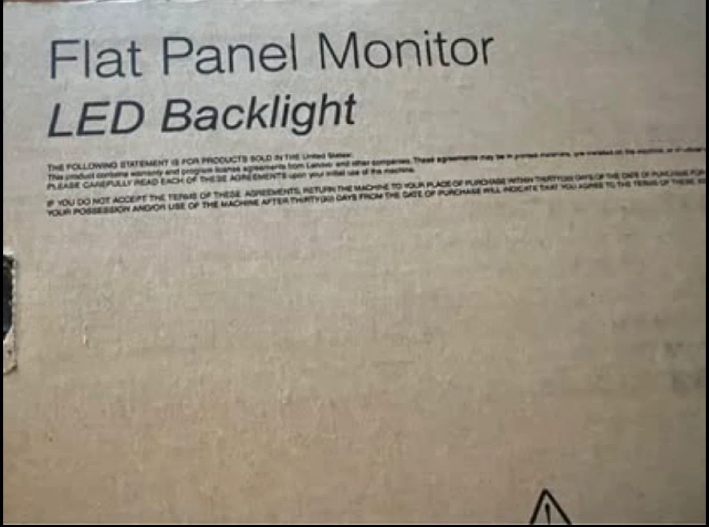 Selling a ThinkVision T24i-10 monitor with a 23.8 inch (60.5 cm) TFT LCD screen and 1920 x 1080 addressability. It's a flat panel monitor with LED Backlight. The box measures 622(W) x 190(D) x 422(H) mm. The monitor is black.