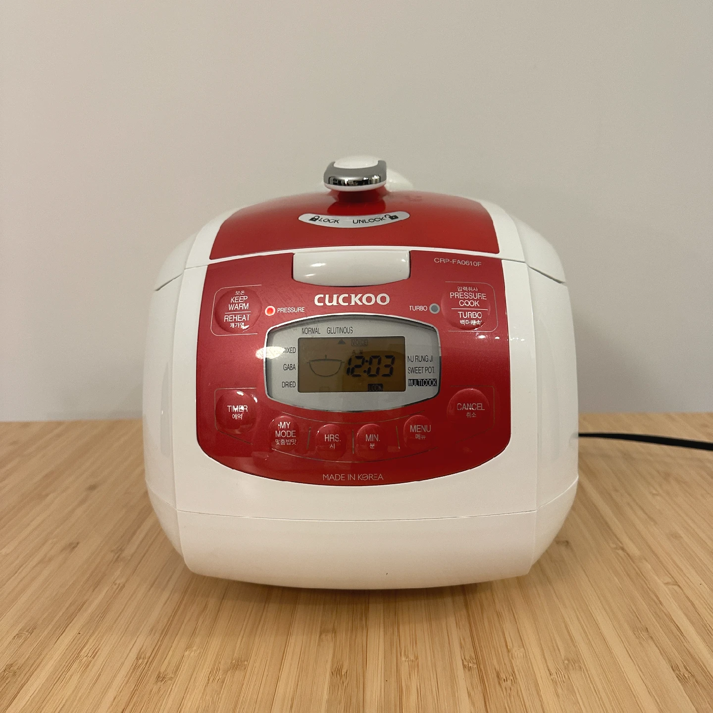 Selling a Cuckoo pressuee cooking rice cooker! It's in great shape and ready to make some delicious rice. This model features pressure cooking and turbo cooking functions for perfect results every time.