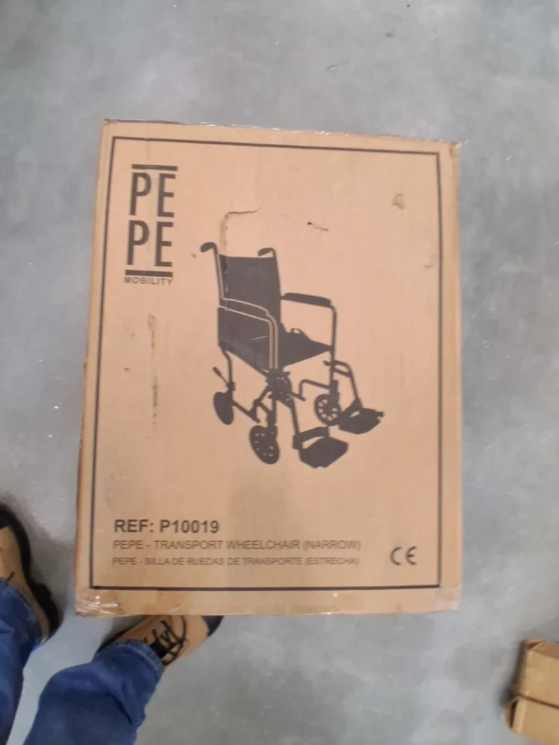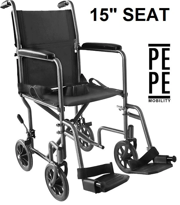 I'm offering a BRAND NEW PEPE Mobility lightweight foldable wheelchair, featuring a narrow 15" seat for easy maneuverability. This wheelchair is designed for convenience and portability, making it ideal for travel and everyday use.