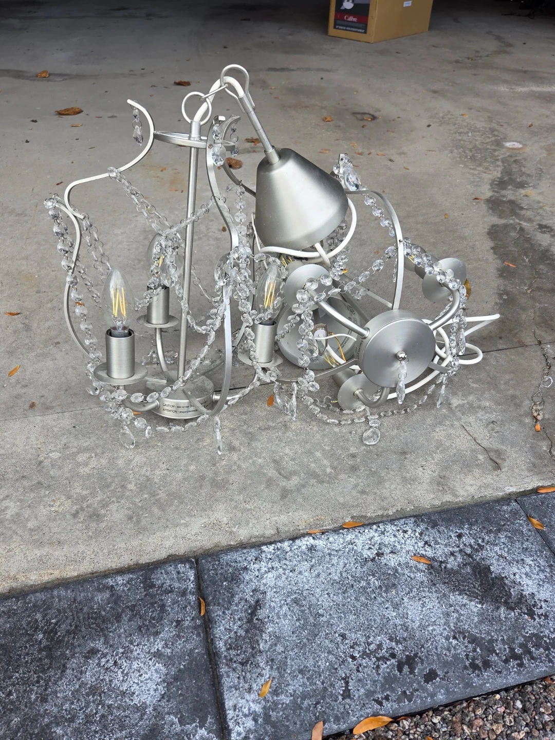 FREE 2 silver-toned chandelier with lovely crystal accents. It would be a beautiful addition to any room take both for free.