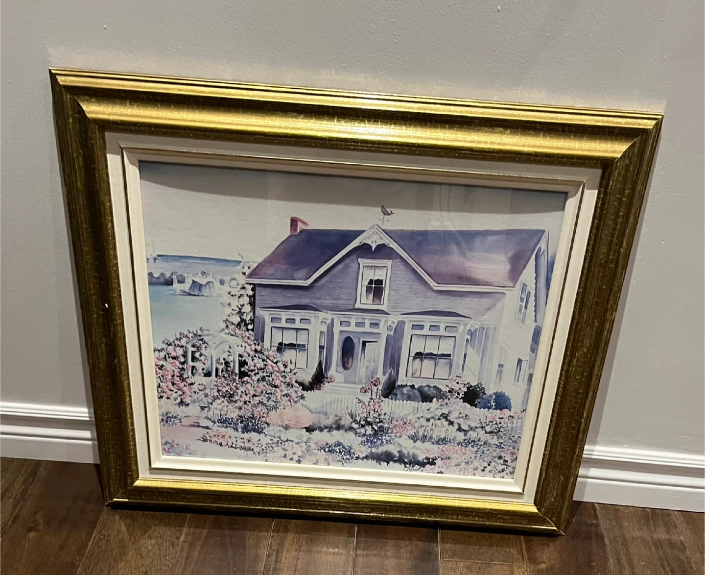 Framed House Print with Gold Frame 26.5X22.5 inches