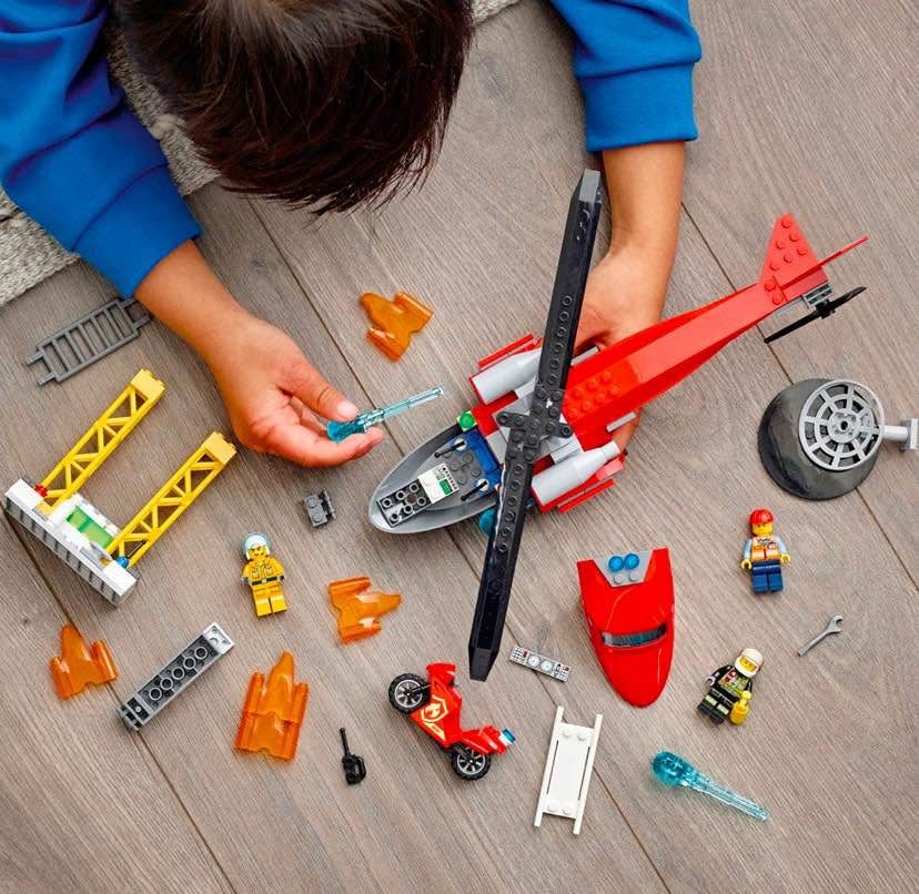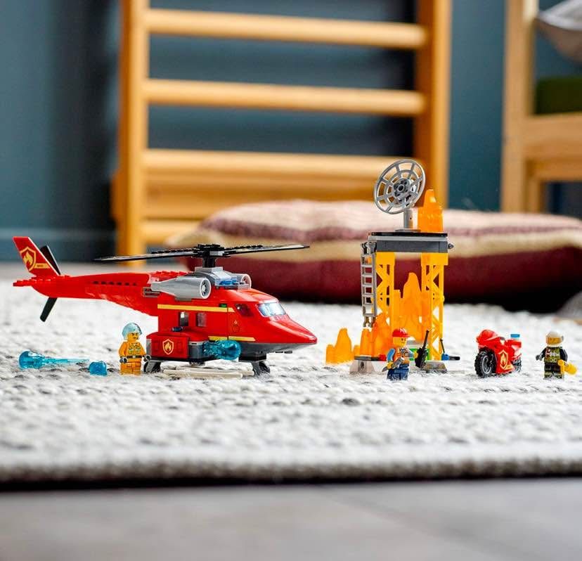 Kids can stack the LEGO flames to create big fires, then shoot the helicopter's water cannon elements to put them out and create LEGO City Adventures TV series stories with 3 fun minifigures