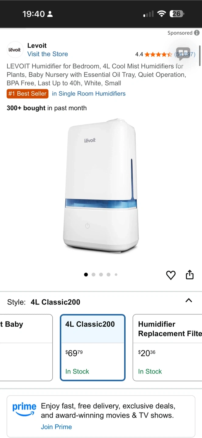 Selling a Levoit 4L Classic200 Cool Mist Humidifier in white! It's perfect for bedrooms, plant areas, or baby nurseries. It has an essential oil tray and is designed for quiet operation. Originally bought for $69.79