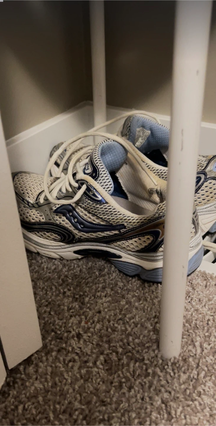 Selling a pair of Saucony running shoes in size US 8.5! They're in good condition and ready for your next run. The shoes feature a stylish white and blue design. Great for everyday wear or hitting the pavement