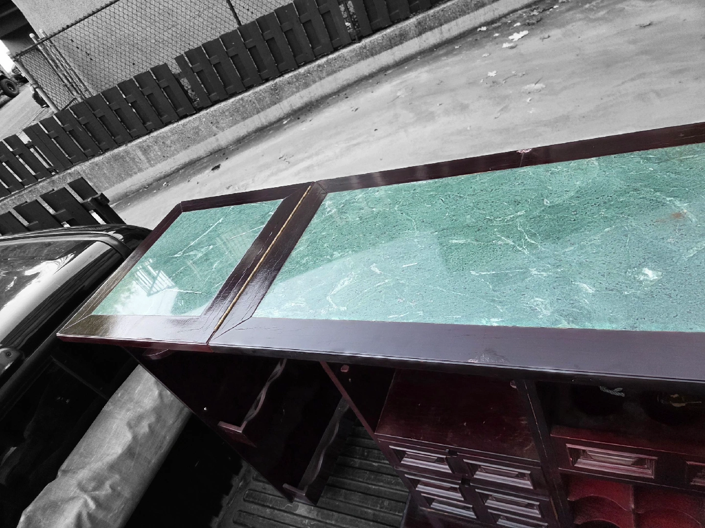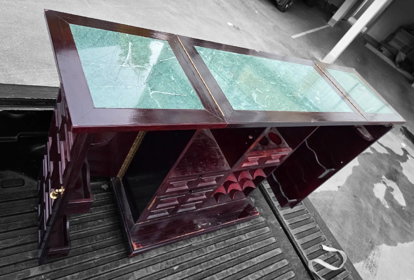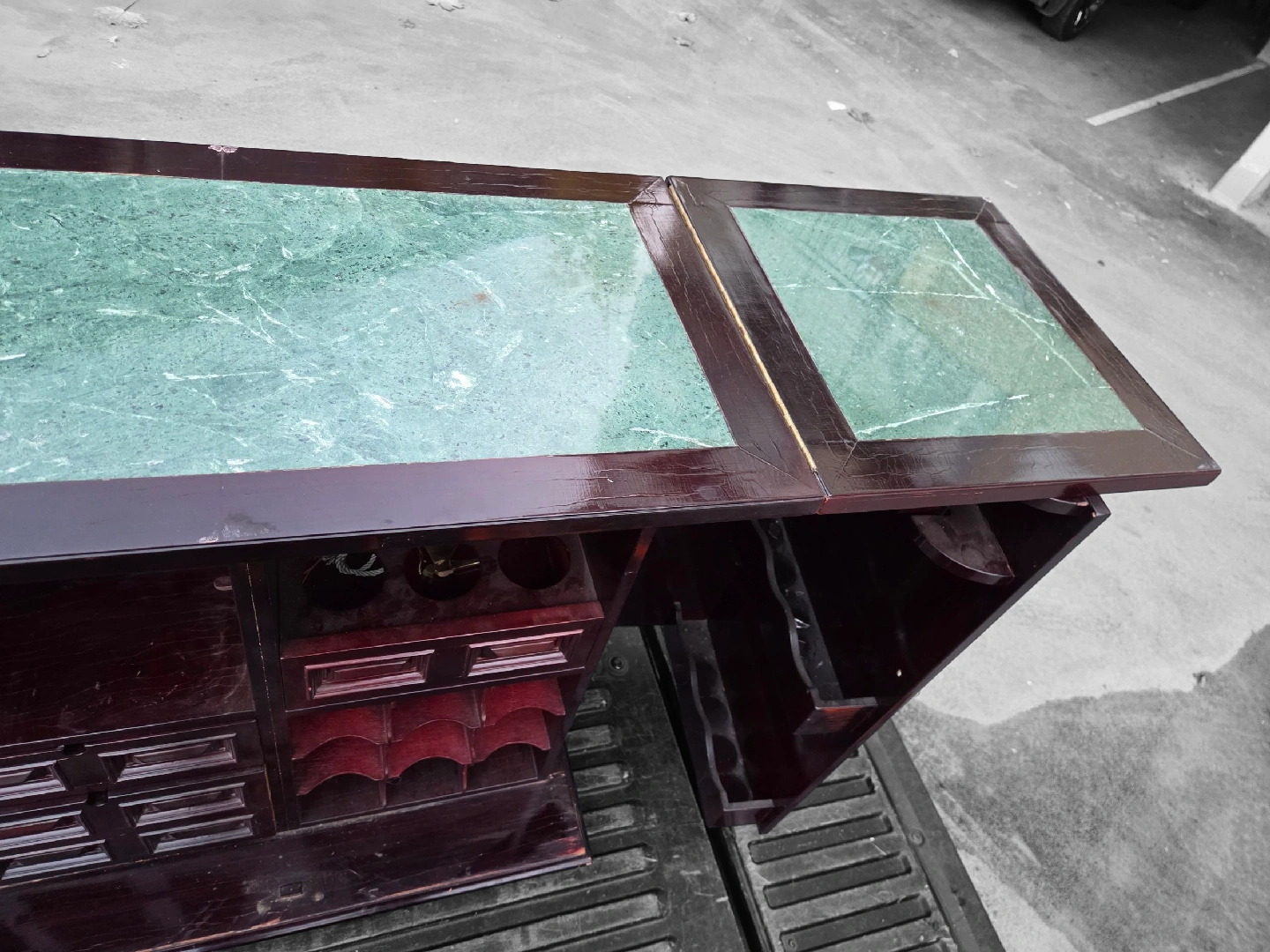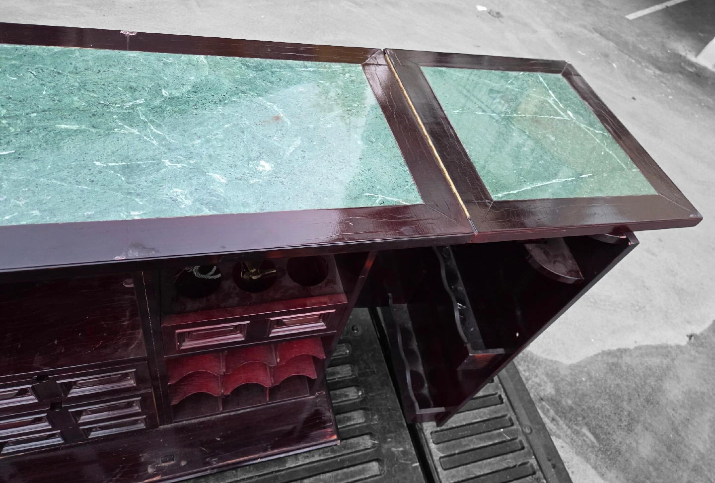 Vintage Solid Wood & Natural Green Marble Expandable Bar Cabinet