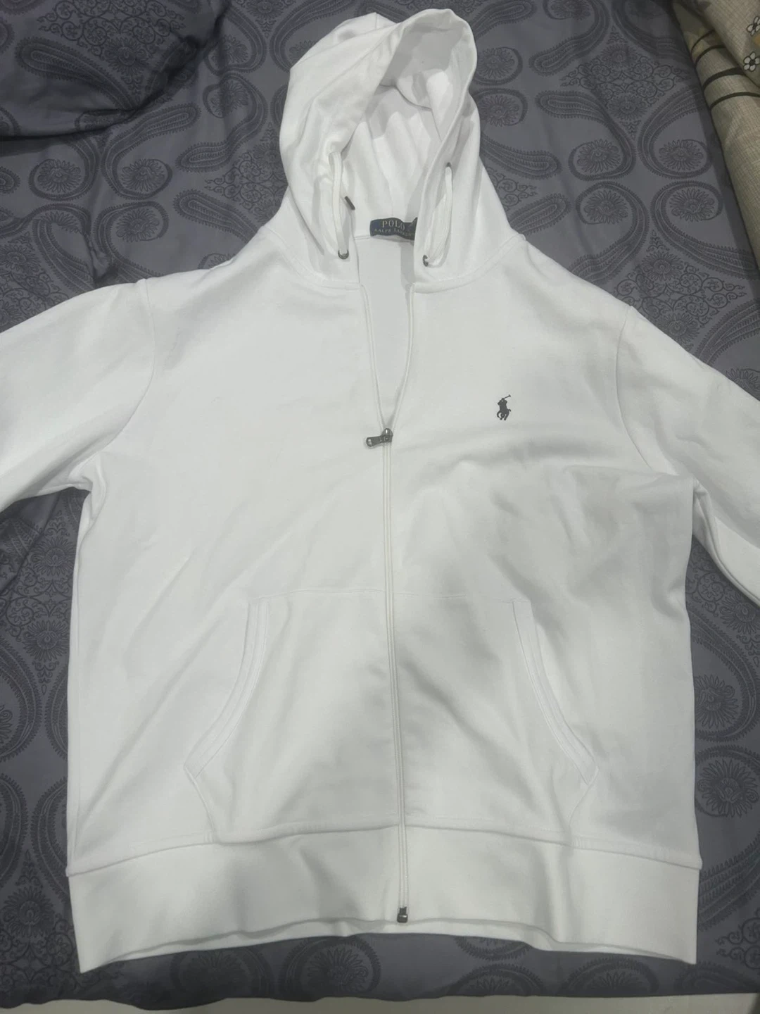 Selling a white Polo Ralph Lauren hoodie in size large! It's in great condition and ready for a new home. Perfect for layering or wearing on its own, this classic hoodie will keep you comfy and stylish.