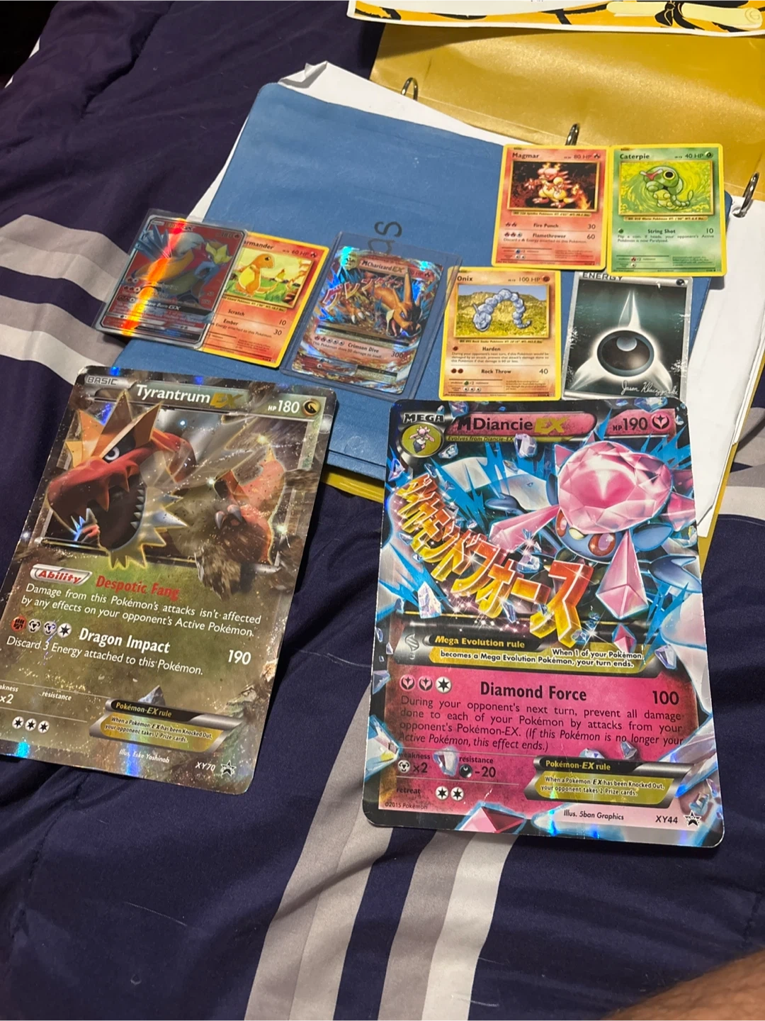 Selling a variety of Pokémon trading cards! Includes cards like Entei GX, Onix, Charizard EX, Tyrantrum, Diancie, and Charmander. Great for collectors or players looking to expand their collection. Please take a look at the photos for details on the condition and rarity of each card