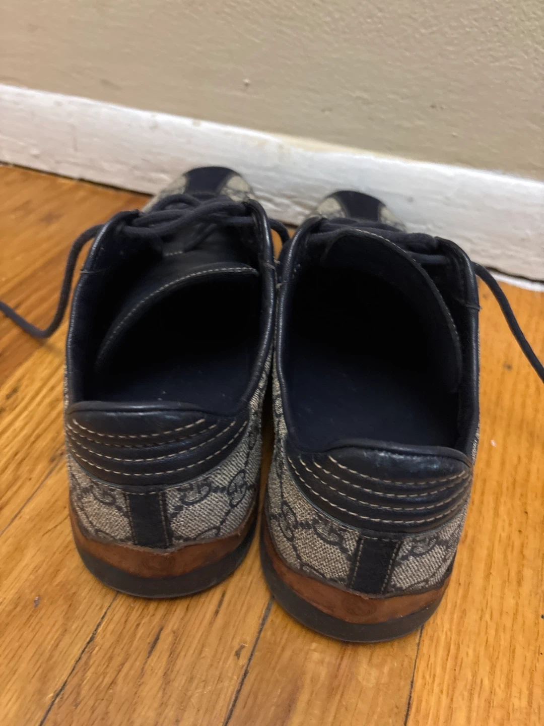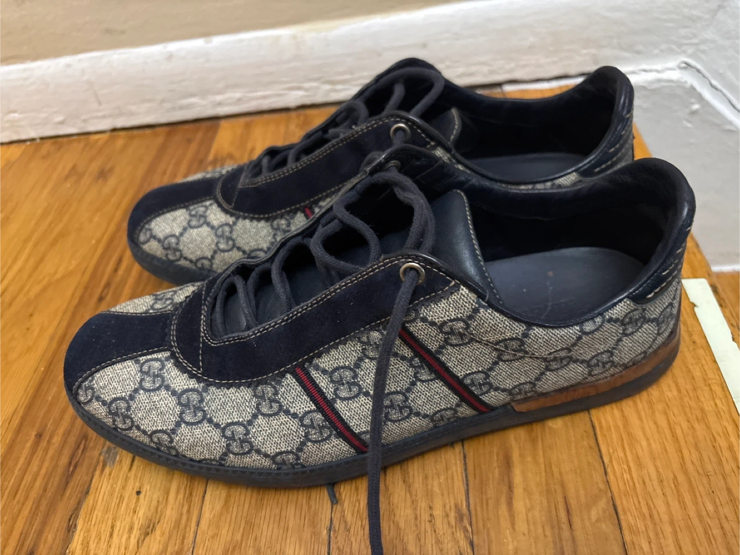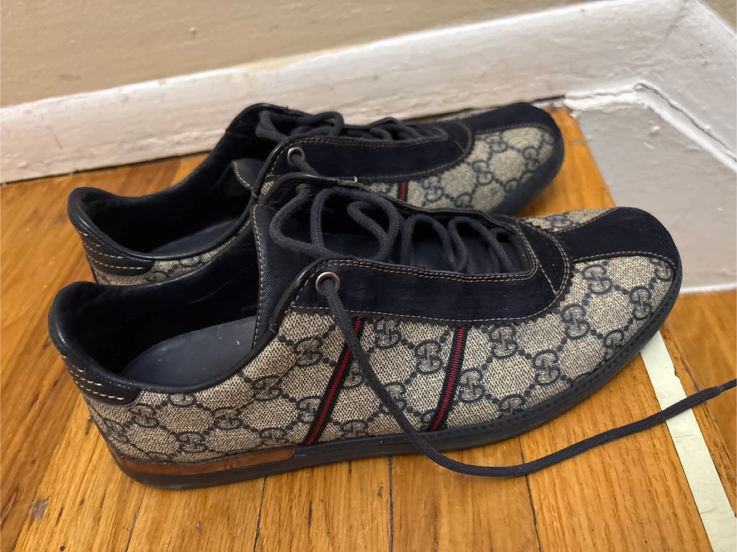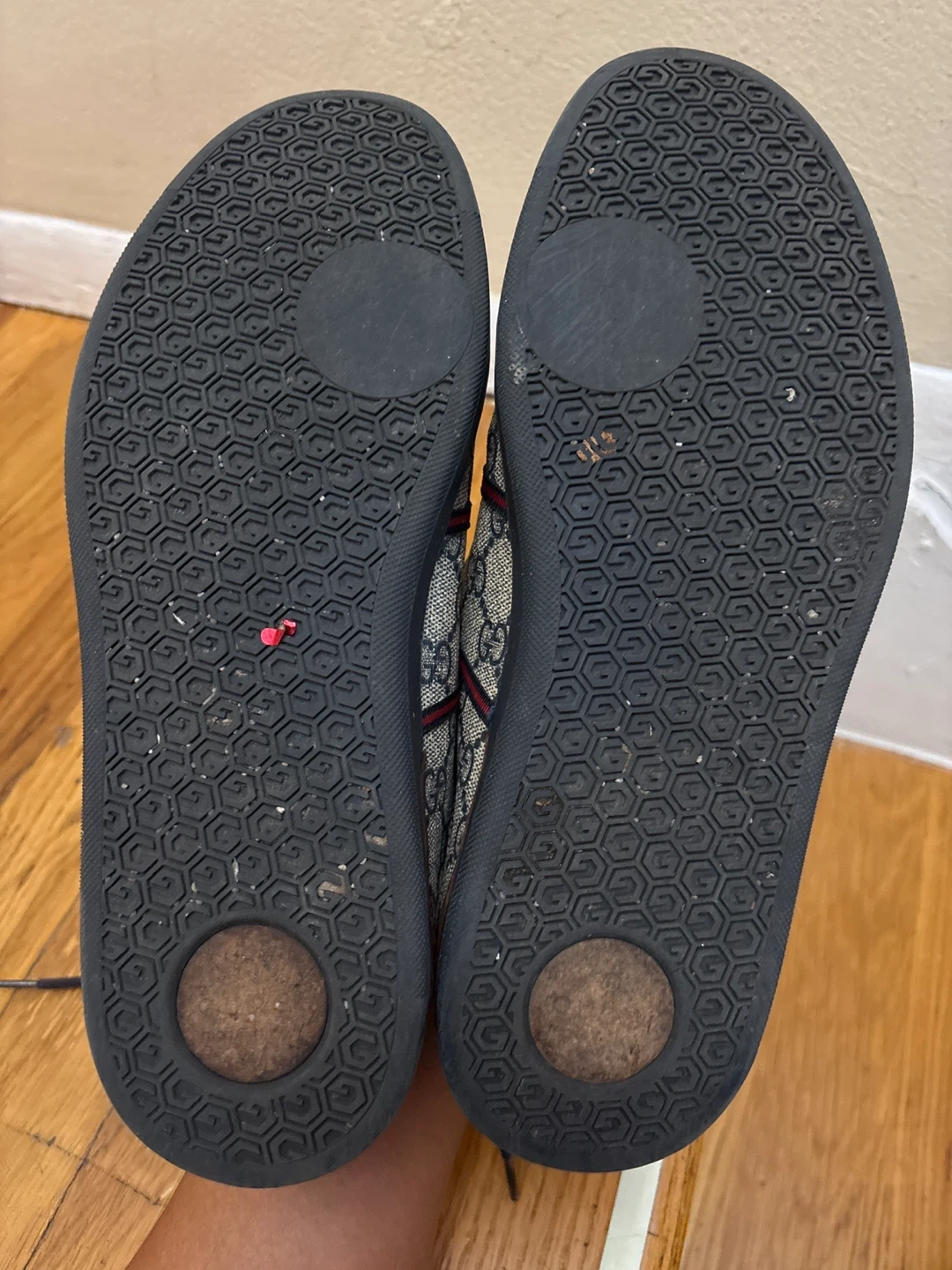 Selling a pair of Gucci sneakers in size 7.5G. They have a stylish design with the iconic Gucci pattern and are in good condition. Perfect for adding a touch of luxury to your casual outfits!