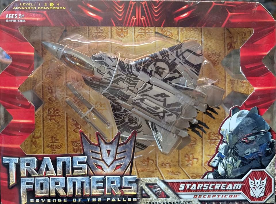 Brand new in original retail store condition. Not a re-release! This is the character 'Starscream' from Michael Bay's second movie of the franchise. This toy was available in retail stores back in 2009. Check out my other Voyager class Decepticons, plus many other listings for collectable toys and other pop culture collectable items on my page?