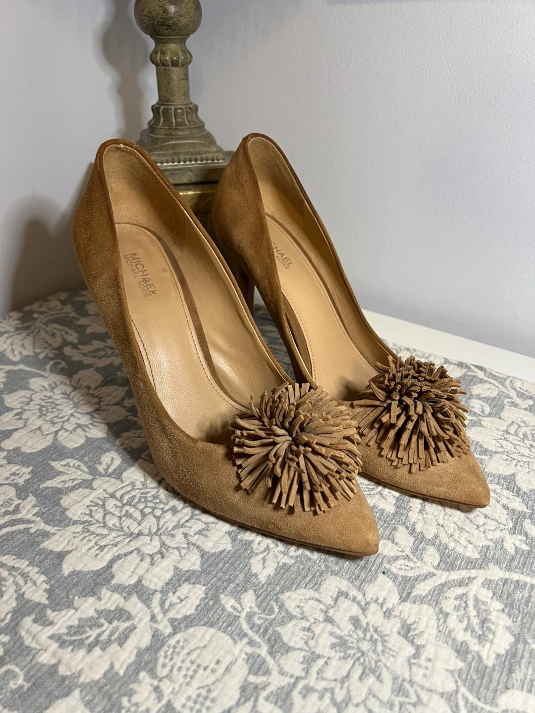 Chic brown heels by Michael Kors. Features stylish tassel accents. Ideal for elevating any outfit.
