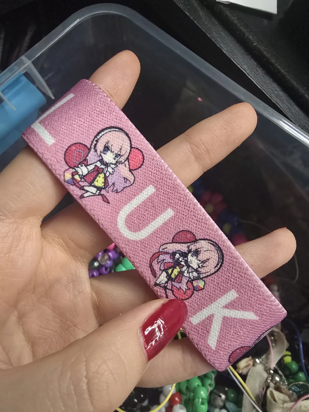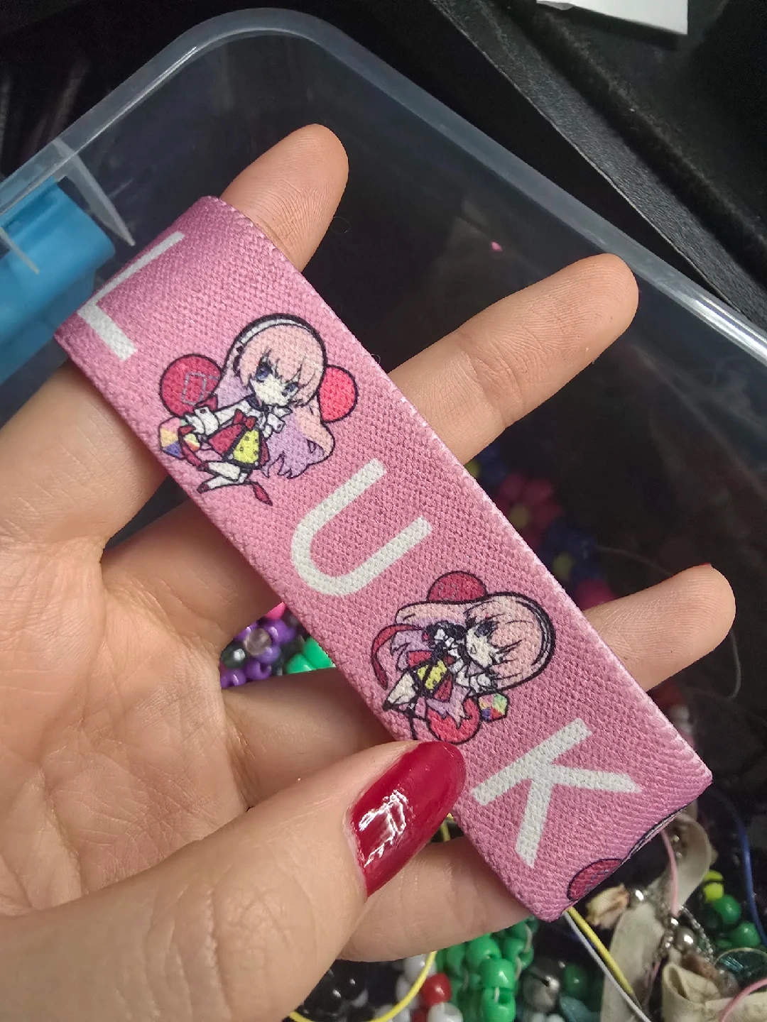 Selling a Luka arm/wristband! It's pink with a cute anime-style graphic. Great for adding a bit of fun to your outfit or showing off your style