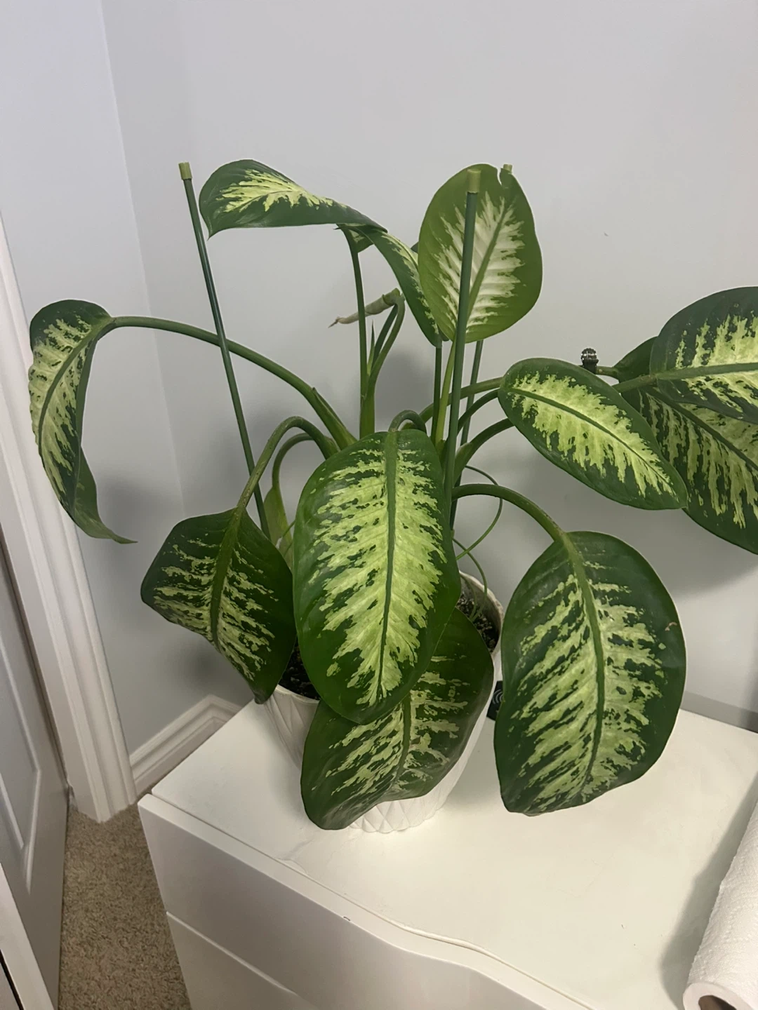 60Selling a healthy Dieffenbachia plant, also known as a Dumb Cane. It comes in a lovely white pot. This plant is great for adding some greenery to your home!