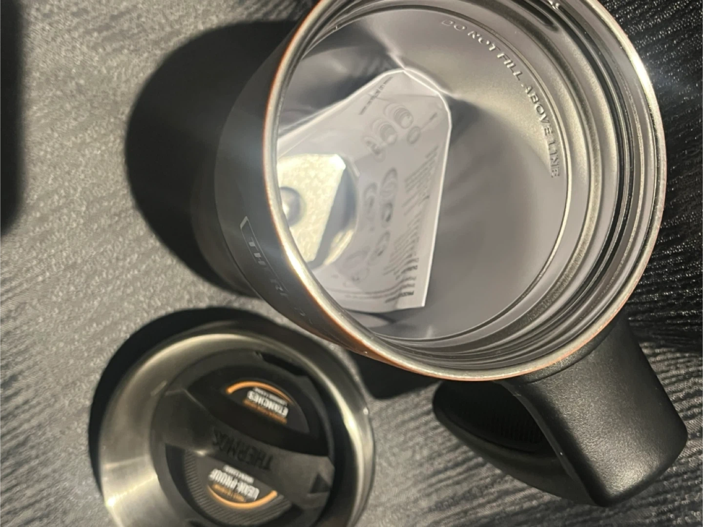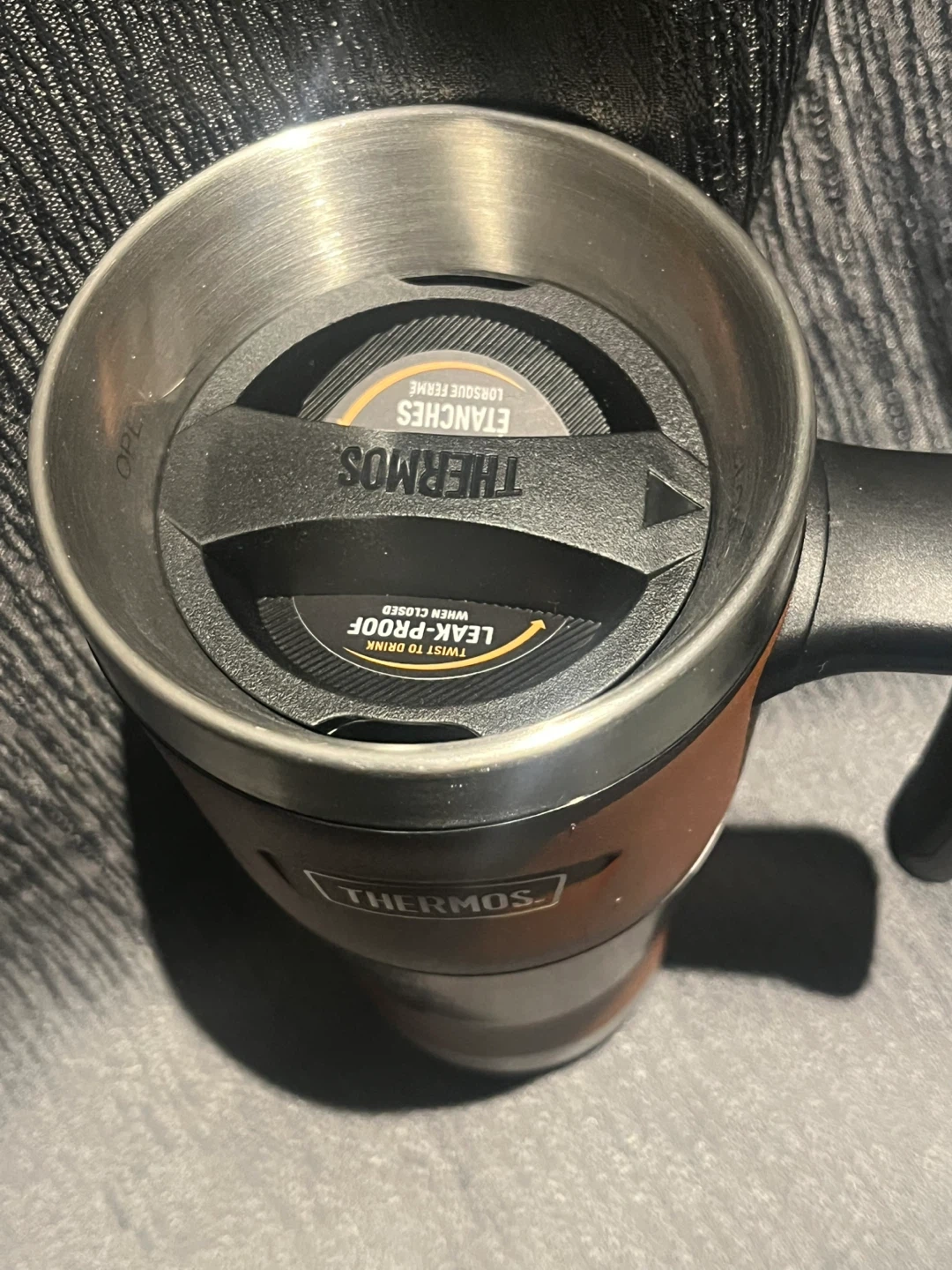 1000+Selling a Thermos Icon Series Leak-Proof Mug. It keeps drinks hot or cold, thanks to its vacuum-insulated stainless steel design. It's a 16oz mug with a handle, perfect for on-the-go use!
