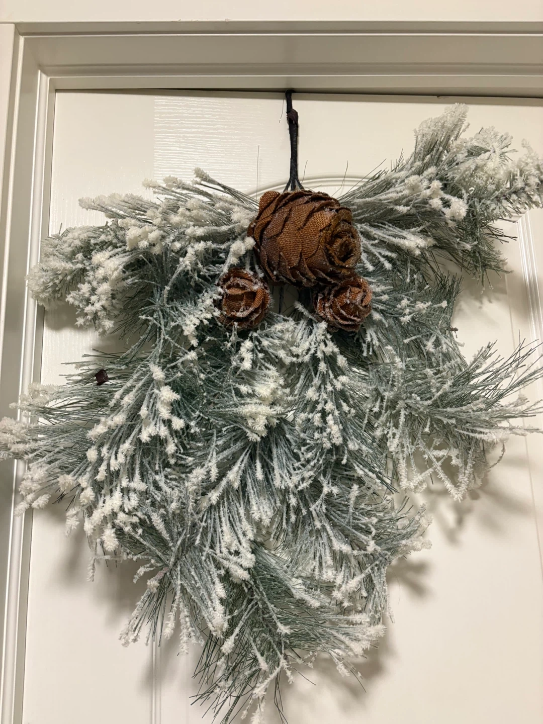 42I'm selling a lovely Christmas pine floral decoration! It has a frosted look and pinecone accents, perfect for adding a festive touch to your home during the holidays