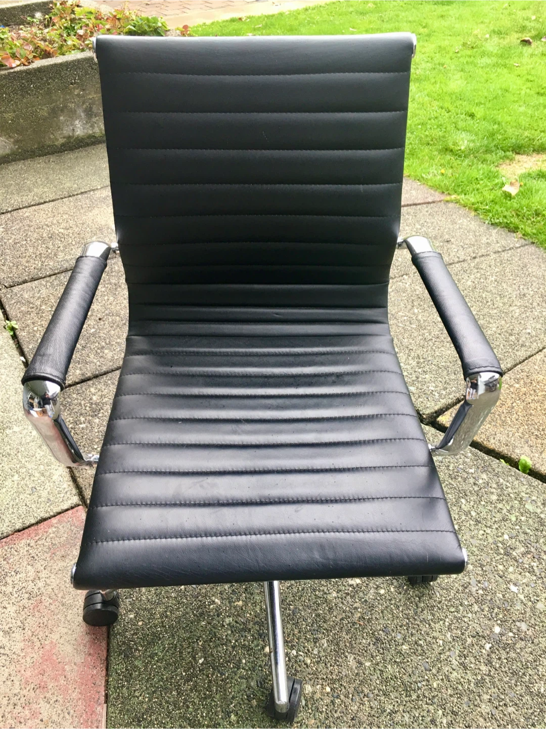 Selling a black office chair. It's in good condition and would be perfect for a home office or study space. The chair features a comfortable seat and backrest, as well as armrests for added support.