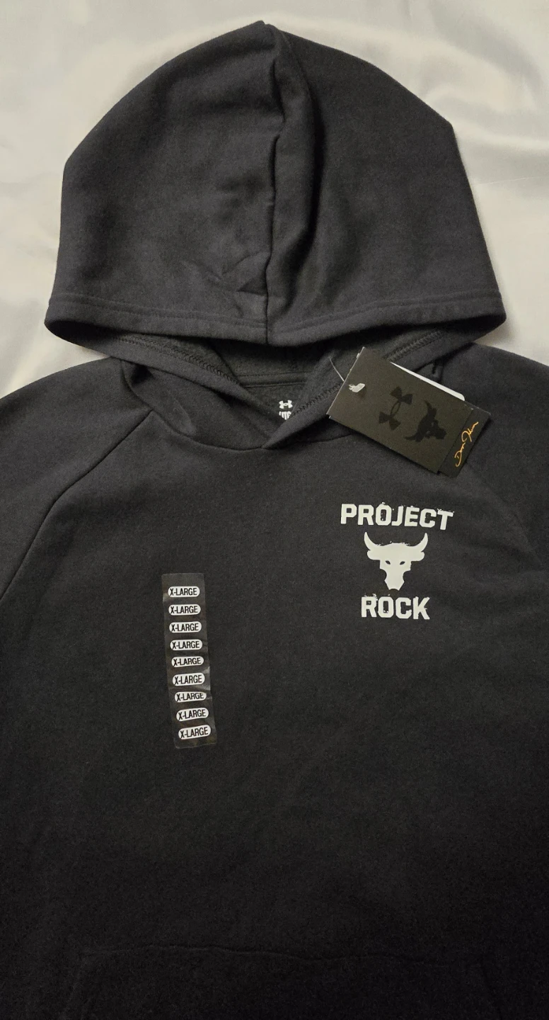 Selling an Under Armour Project Rock hoodie in size YXL (Boys 18-20) It's brand new with tags! It features the iconic Project Rock logo. Perfect for workouts, casual wear or makes a great gift!