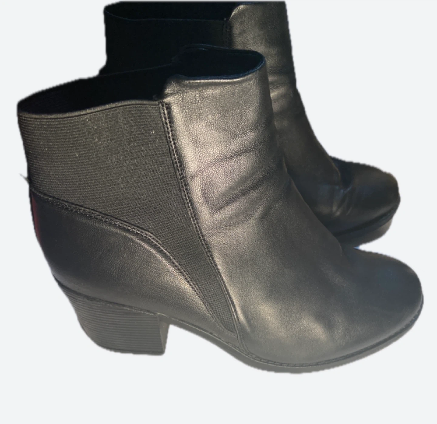 Selling a pair of SoftMoc Damara ankle boots in black leather. They're in great condition and are a size 10. Perfect for adding a bit of style to your outfits!