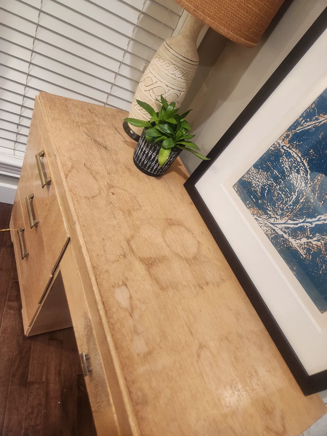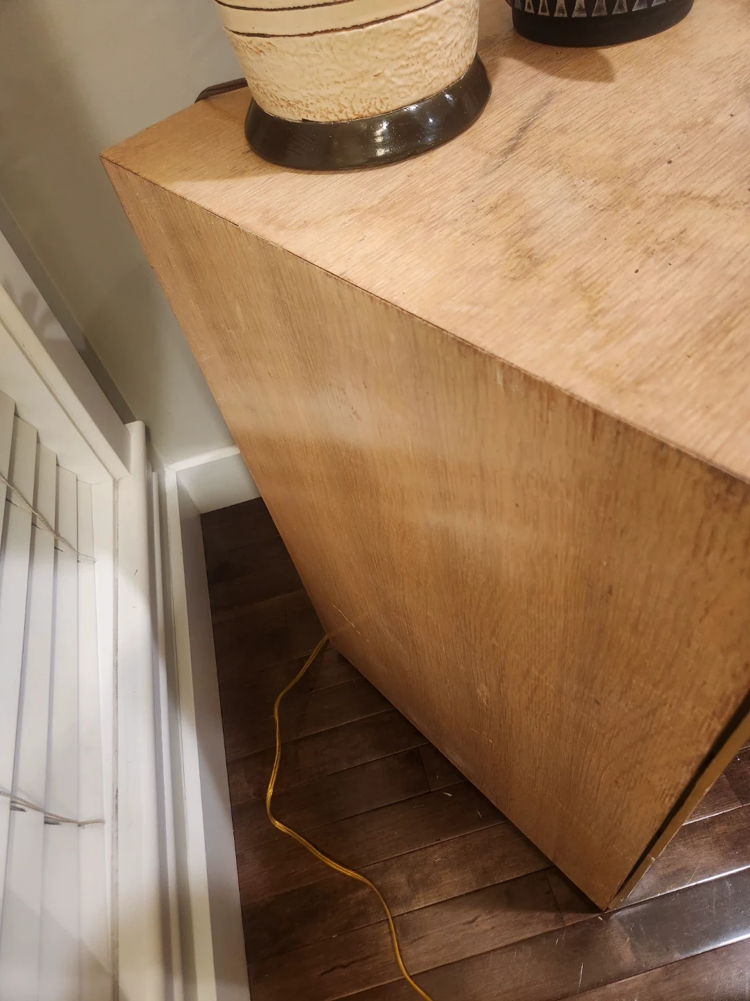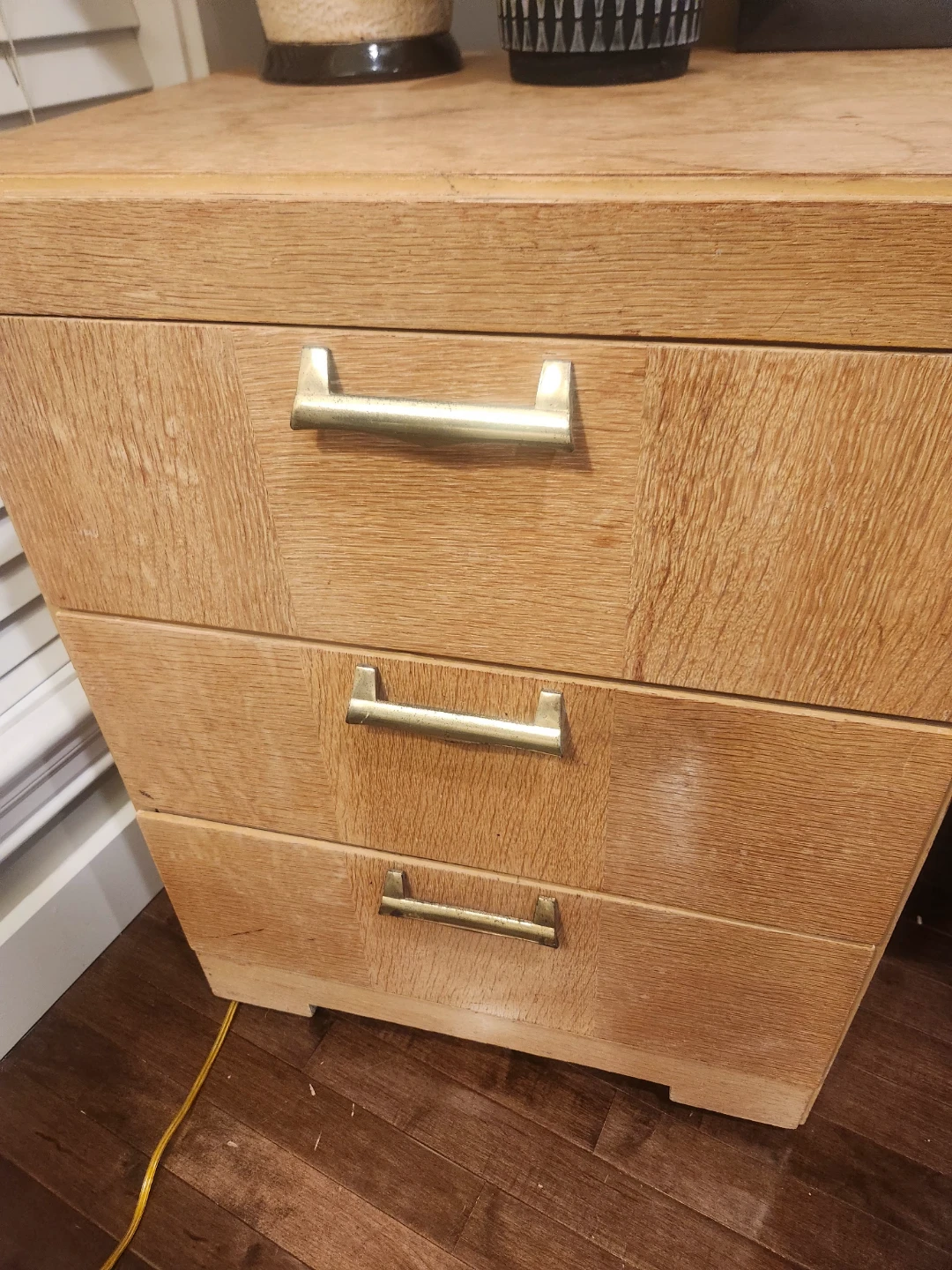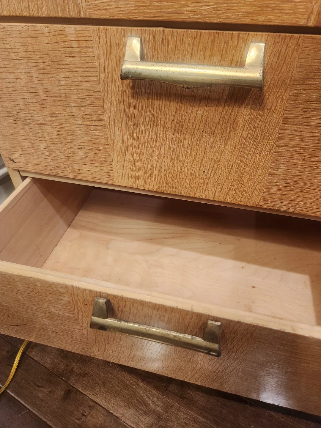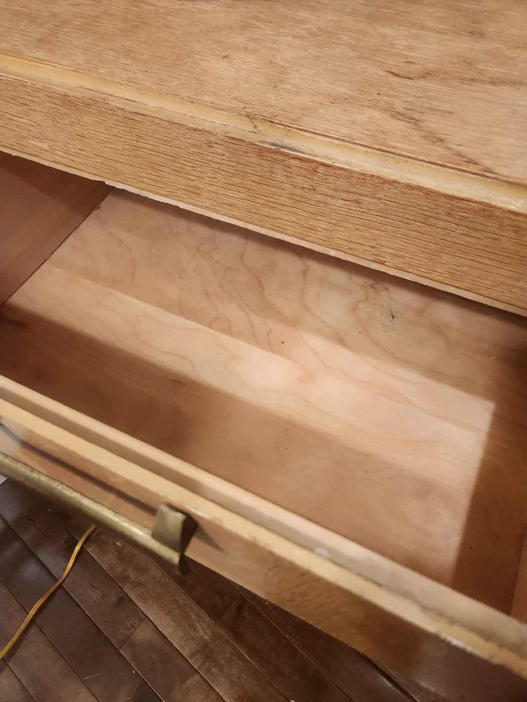 1950's Canadian made wooden desk featuring 4 drawers. Its small space friendly for bedrooms or bachelor suites. The maker Victoriaville Canadian furniture company. We'll constructed and oodles of storage this desk is a steal of a deal! This handsome and handy functional piece of perfect for study space. This light wood piece can be a TV Console, entryway table, side table or a fantastic option for extra storage and height for your plant babies!