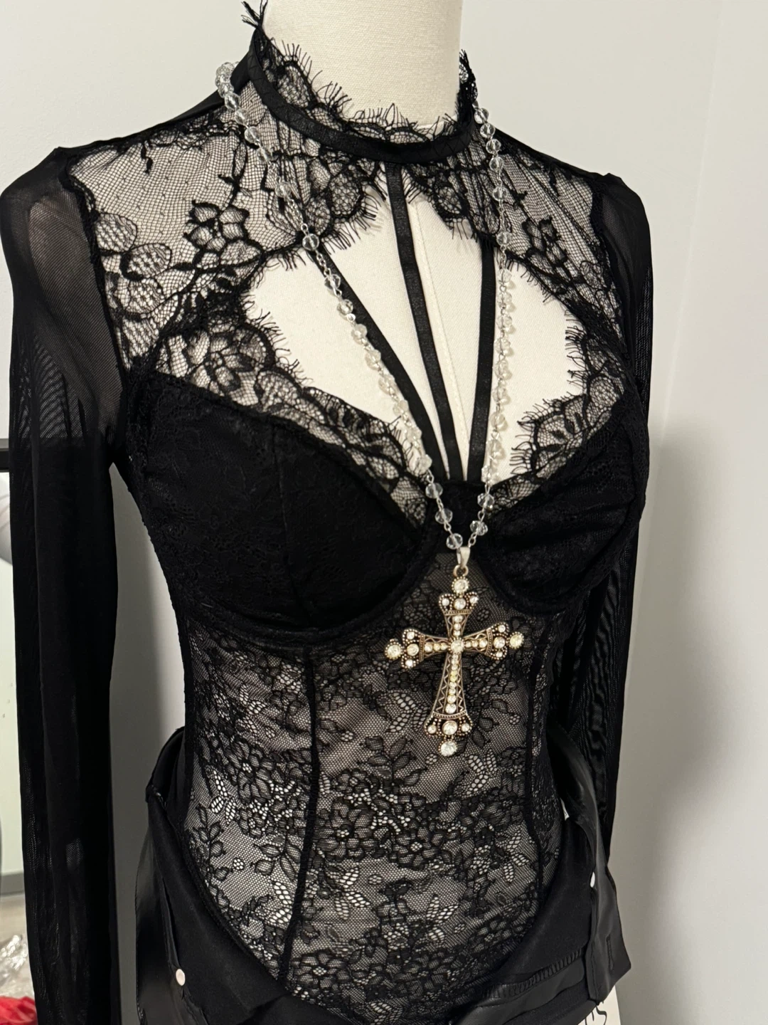 Selling a black lace bodysuit, perfect for a night out or a special occasion! The intricate lace detailing and flattering design make it a standout piece in any wardrobe. It's new! Reason for selling it: too big for me.