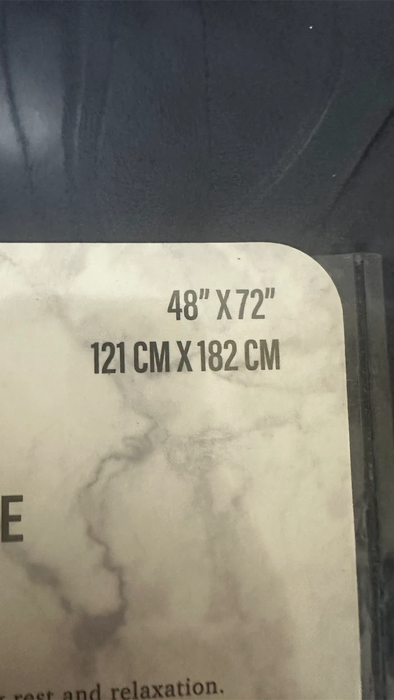 The size is 48" x 72" (121 cm x 182 cm). It weighs 15 lb and comes in its original packaging
