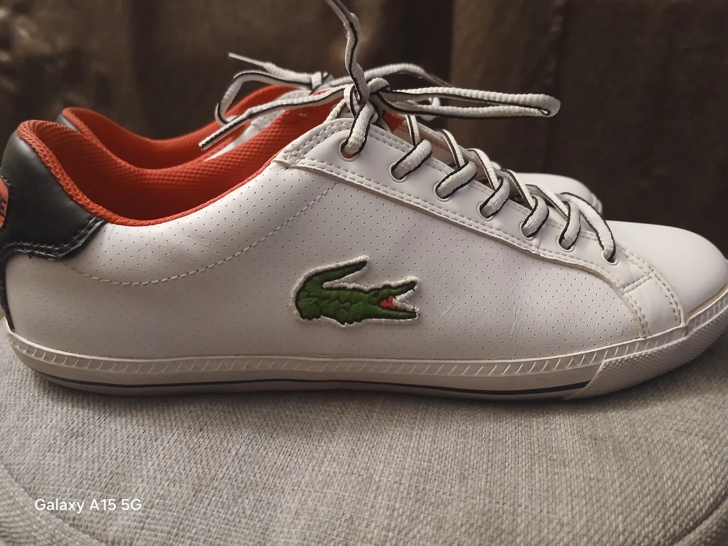Selling a pair of Lacoste GRAD VULC US sneakers in white! These are a men's size 9.5 (USA). They have a stylish design with the classic Lacoste logo. The shoes are in good condition and ready for a new home