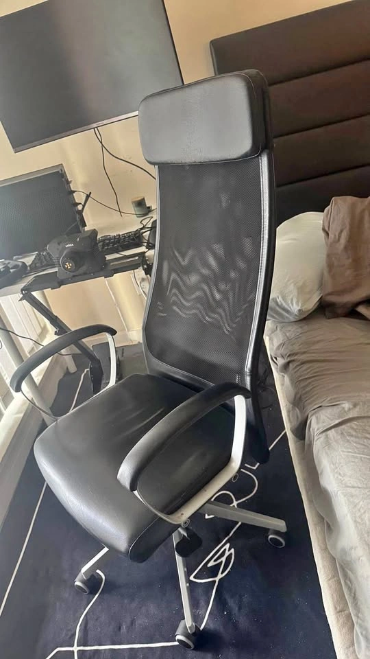60Ergonomic office chair with adjustable height, lumbar support, armrests, and 3-position tilt lock. Breathable mesh back, durable leather fabric. Perfect for gaming or office use.