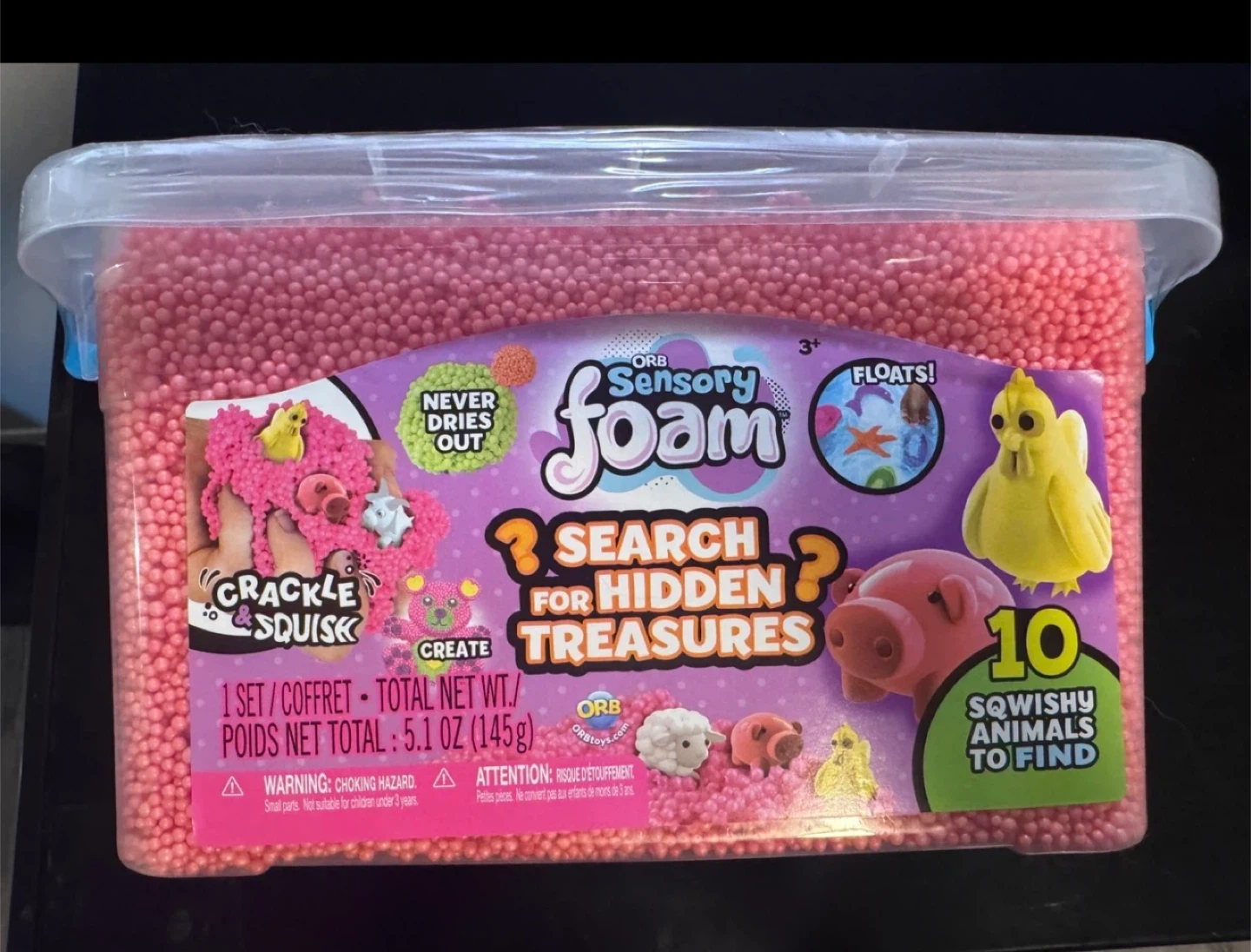 It's a fun, tactile toy that never dries out and even floats. The set includes 10 squishy animals to find, adding an element of surprise and discovery for your little one. Perfect for sensory play and creative crafting!