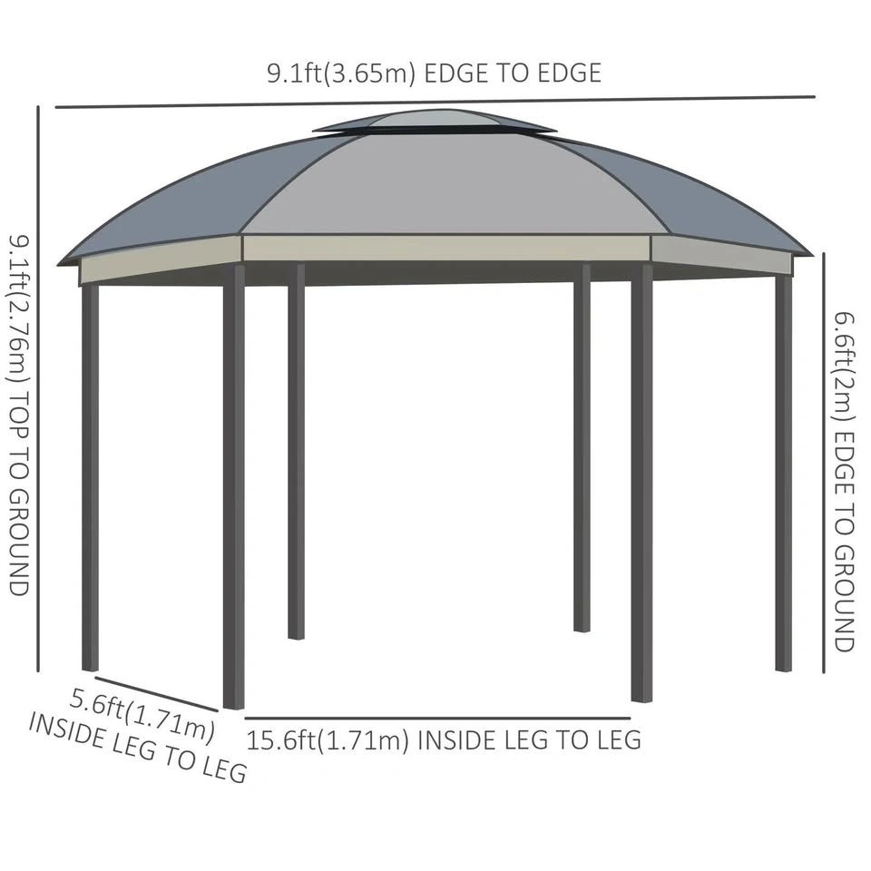 21This 12'x12' outdoor gazebo features a chic curved shape and sleek two-tier design, making it excellent for various special events such as patio parties, poolside picnics, garden games, and even weddings. It adds beauty and elegance to backyard birthdays and creates a stylish shelter for any occasion. It features mesh netting sidewalls to keep out insects while allowing a pleasant breeze. The included privacy curtains provide shade from wind, UV rays, and glare. (six zipper mesh nettings and six privacy curtains included). Made with a warp-resistant steel frame and waterproof polyester, ensuring durability for repeat use. It features twelve support stakes for easy mounting on soft ground and a double vented roof that offers stability against wind and adverse weather conditions. This versatile backyard gazebo canopy with a hook at the top for light is great for poolside or patio parties. With ample space and a visually appealing design, it sets the stage for memorable outdoor gatherings. It's also an impressive choice for weddings, leaving a lasting impression on your guests. Overall Dimensions: 12' x 9.1' H ( 3.65 x 2.76 m). Eave Height: 6.6' H (2 m). Column Spacing: 5.6' L. Note: Not recommended for use in heavy rain, wind or snow.