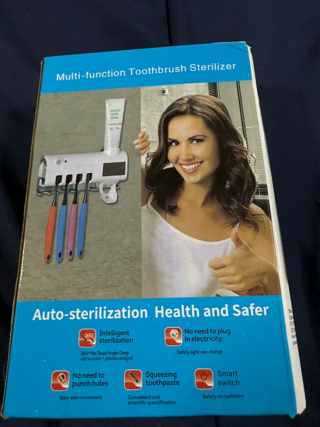 Selling a multi-function toothbrush sterilizer! It uses photocatalyst technology to sterilize under visible light and ultraviolet light, making it harmless to people. It also features auto-sterilization for health and safety.