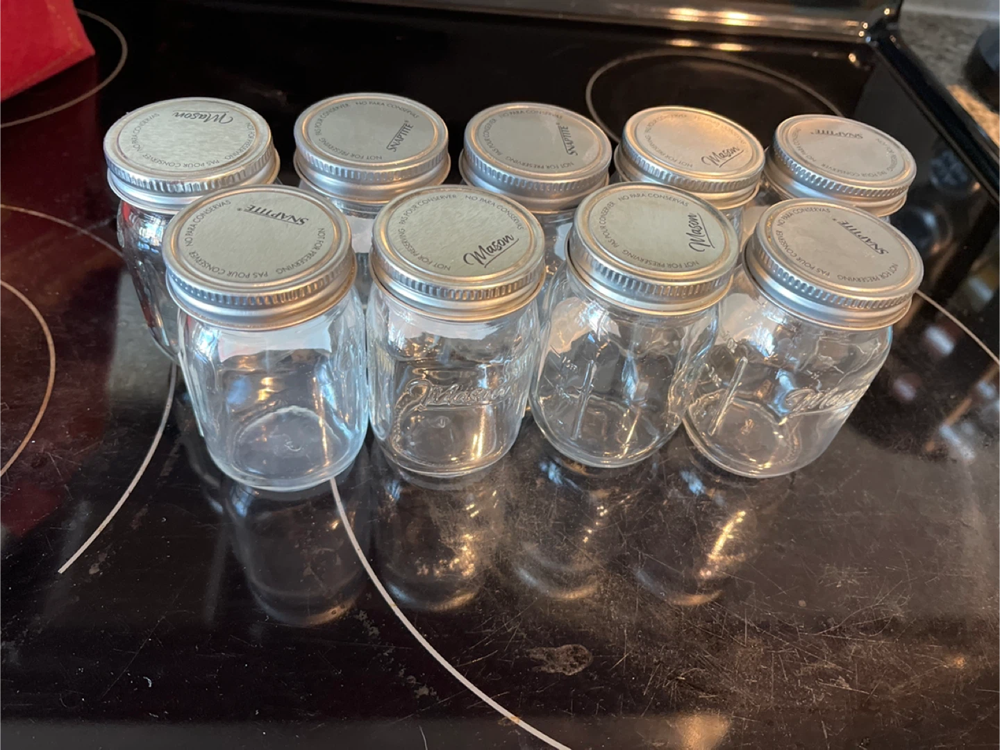 1 / 31 / 3Buy & Sell30 oz set of 9 small mason jars30 oz set of 9 small mason jars$5Selling a set of 9 small mason jars, 30oz. They are perfect for canning, storage, or crafting. They are in great condition and ready for a new home!ConditionLike newWHERE TO MEETCheck LocationView MapSELLERverifiedMariaLiberty Village1106 reviews3 chats·6 favorites·69 viewsSEND CHAT TO SELLERHi Maria! I’m interested in your listing.Hi Maria! I’m interested in your listing.Get the Karrot app to chatSign In to chat