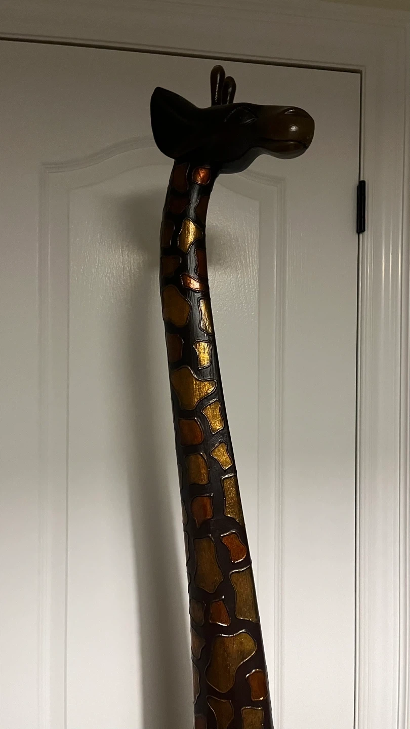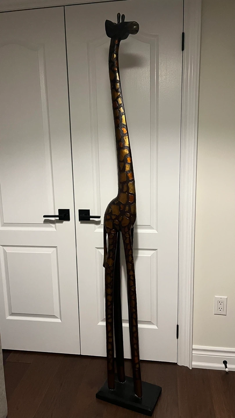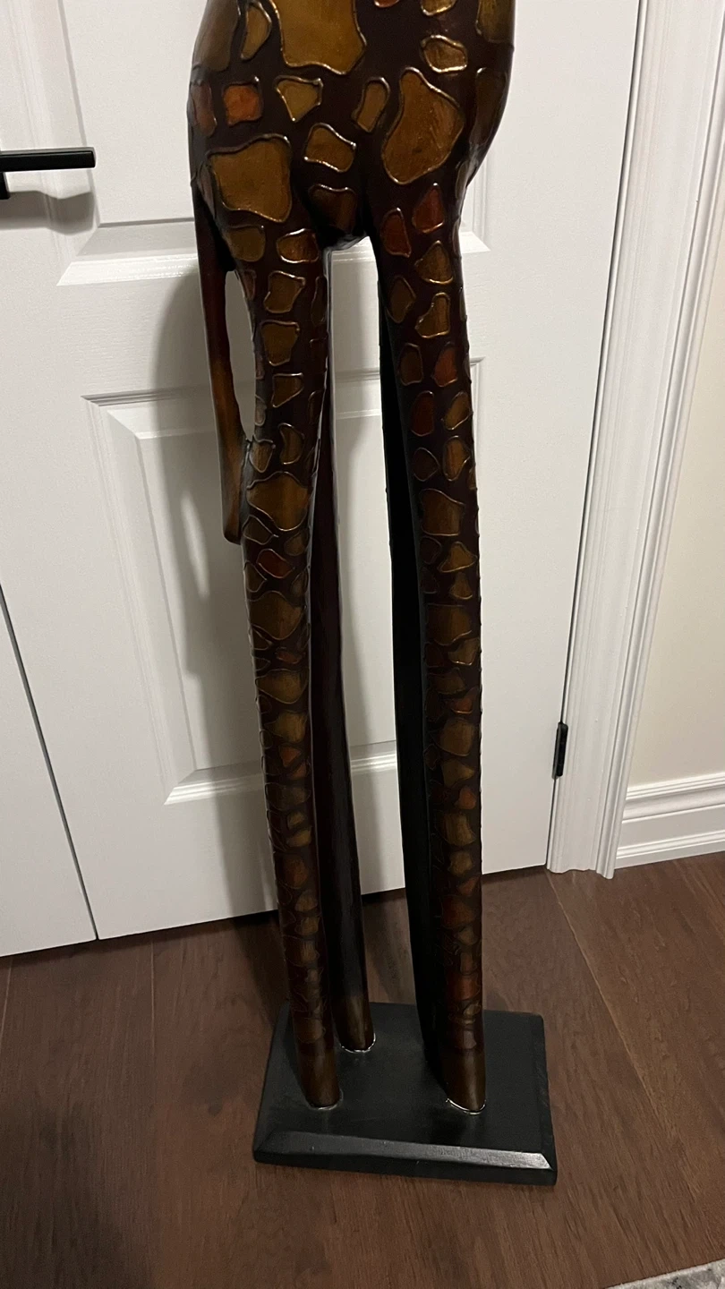 34Looking to add a unique touch to your home decor? This giraffe statue is a great conversation starter and a beautiful piece to display in any room. It has a lovely textured design with a mix of brown and gold tones that catch the eye