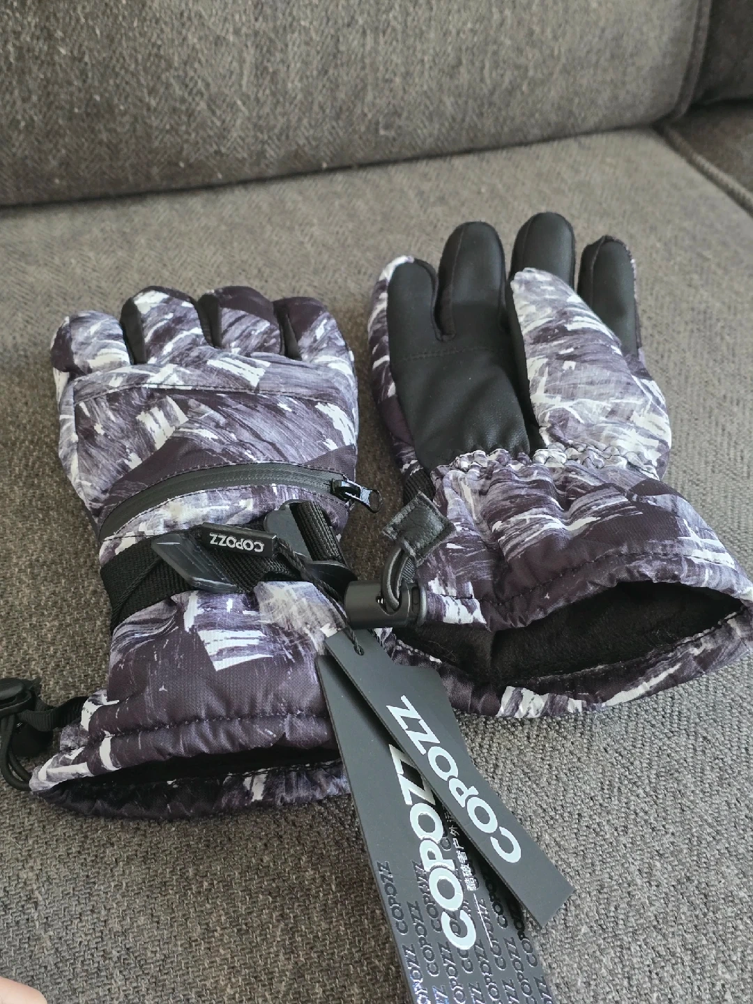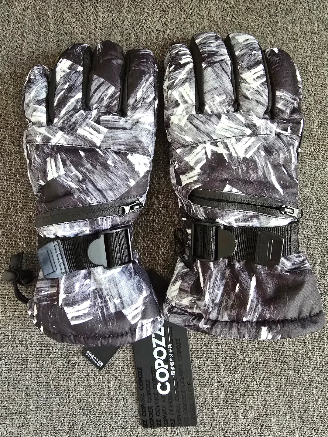 Keep your hands warm on the slopes with these COPOZZ ski/snow gloves! They're a size medium and feature a stylish black and white pattern.