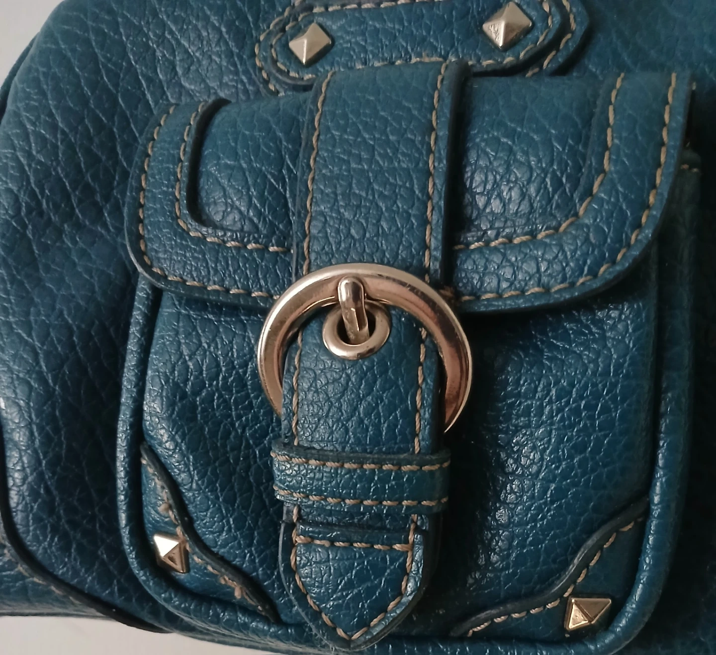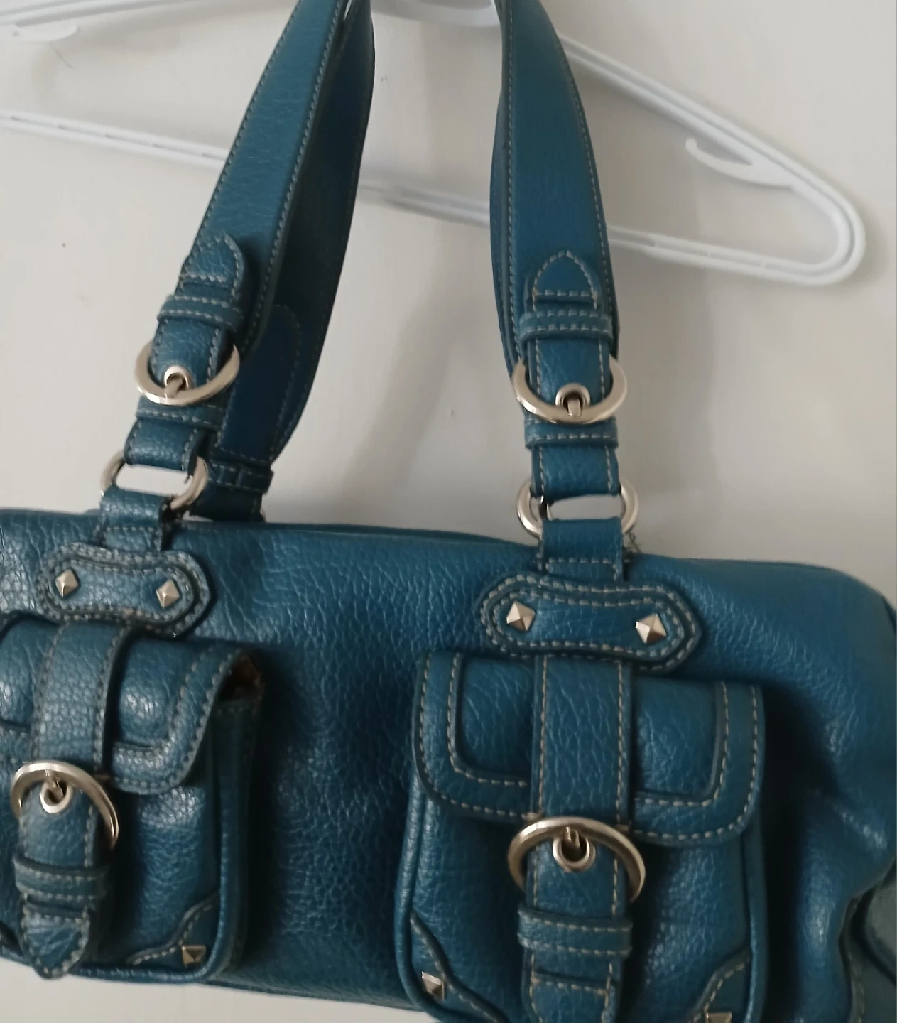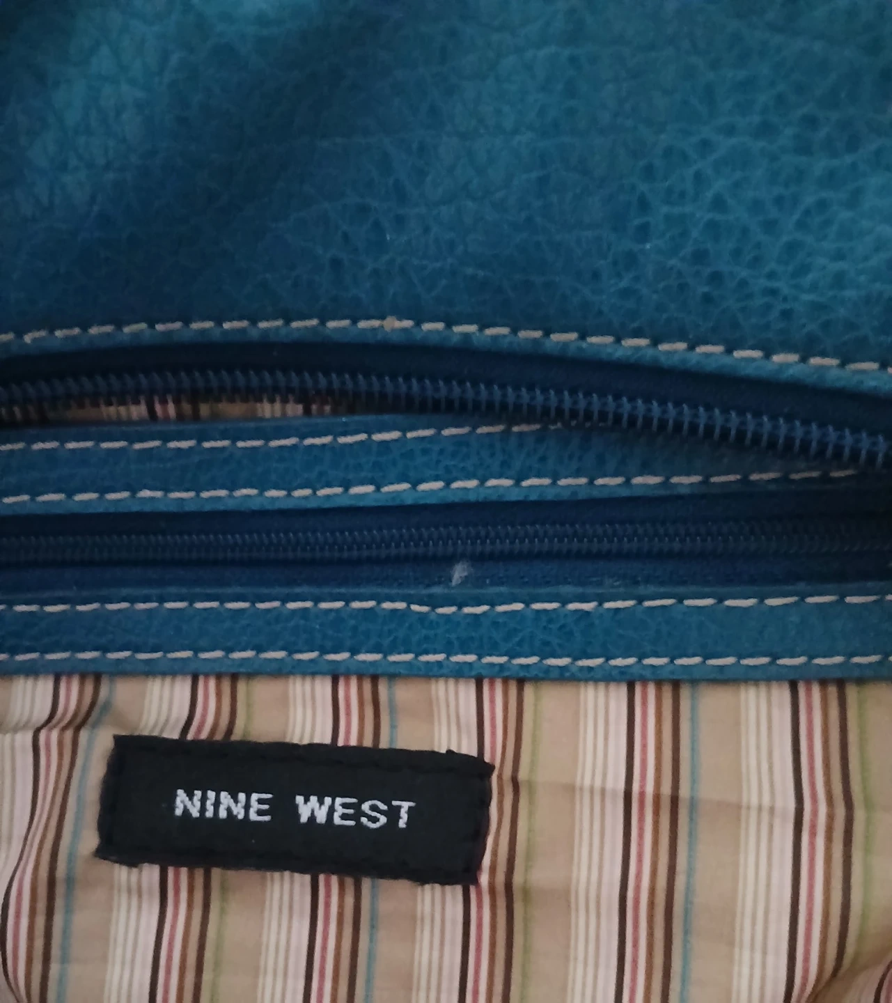 1000+Selling a Nine West purse in a lovely teal colour. It's made of leather and is in great condition. Perfect for everyday use! Satchel or also can fit on as shoulder bag 13x6.5 EXCELLENT CLEAN CONDITION