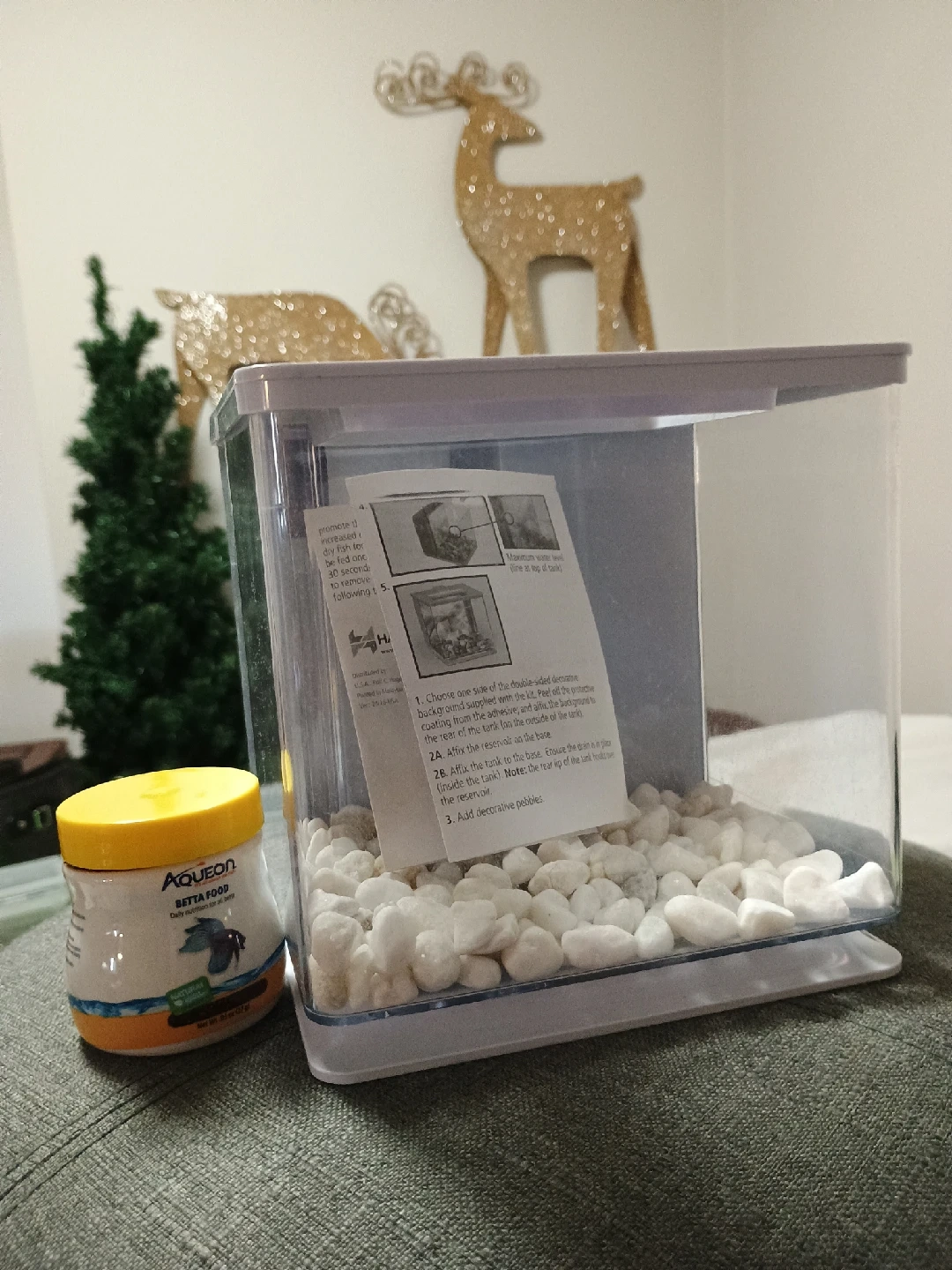 Selling a Marina Betta EZ Care Aquarium Kit. It's a 2.5L clear plastic cube aquarium with a frame and EZ care feature. I have included Beta Food.