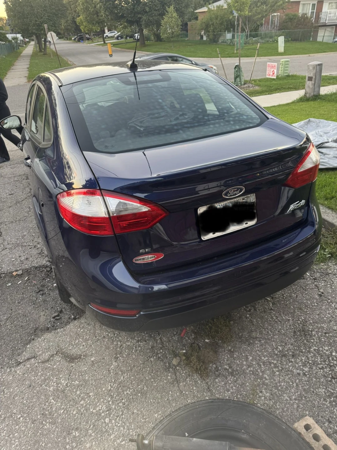 Selling a Ford Fiesta SE in a lovely blue colour. It's a sedan, perfect for getting around town. It has the SE trim. Its missing passenger side mirror but will but included just gotta get it installed