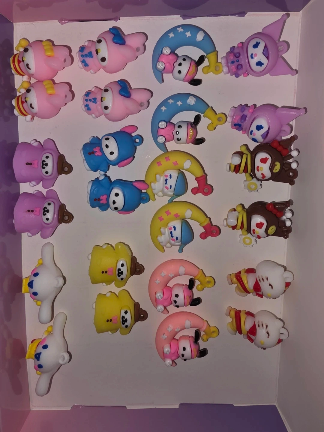 These are Sanrio character charms, perfect for adding a bit of fun. They come in various colours and designs, featuring popular characters like My Melody, Kuromi, and Hello Kitty. These charms are brand new. Pickup is in my building near High Park Station.