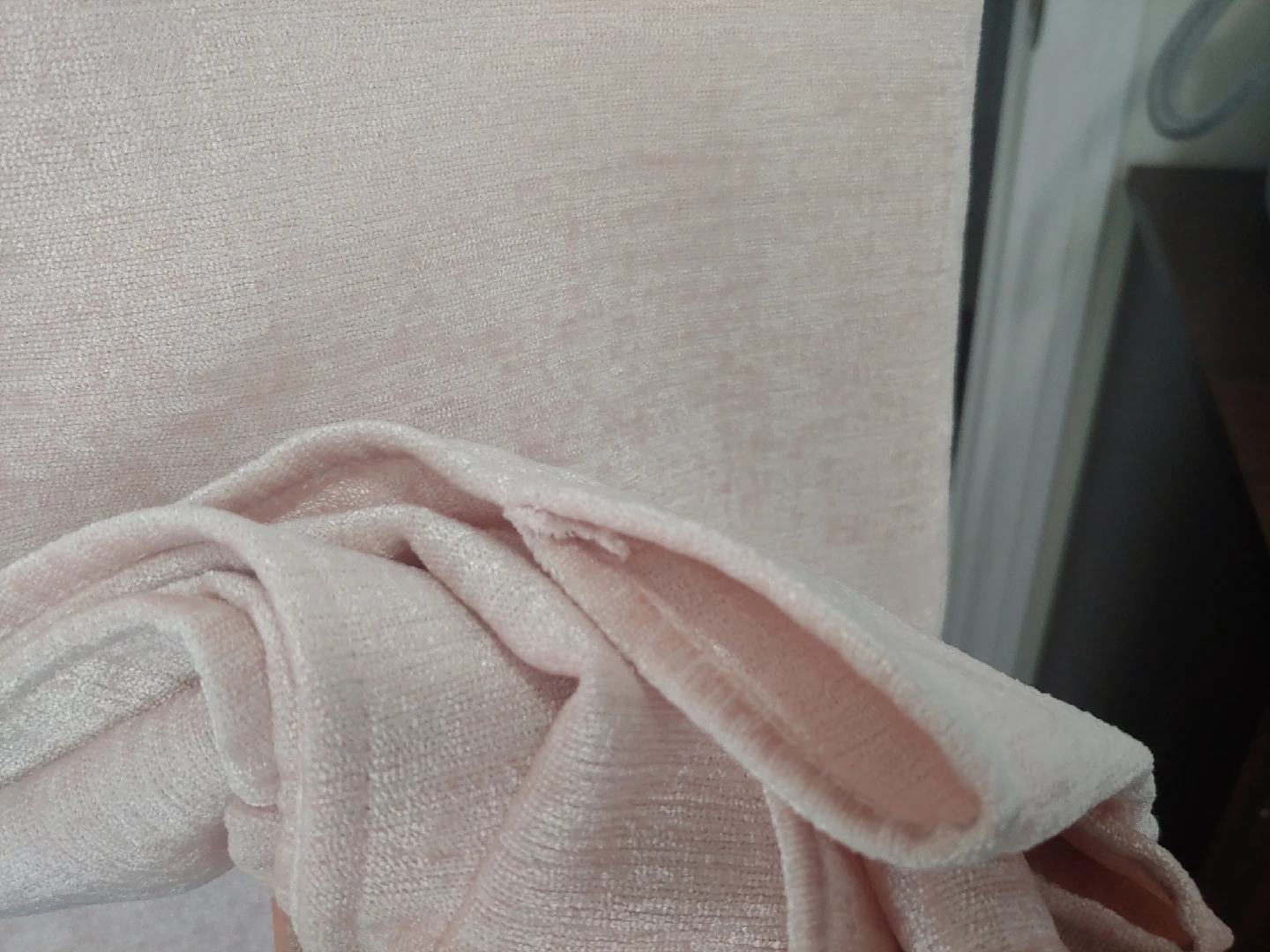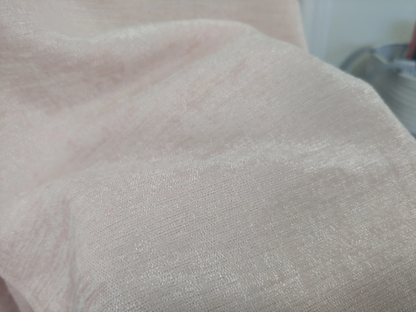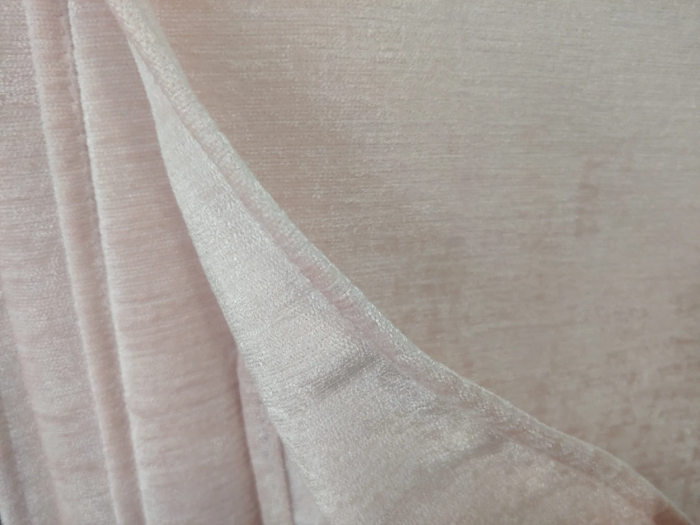 Selling 2 curtain panels in a soft pink velvet material! Drapes beautifully, rod pocket style. Each panel measures 37 inch by 84 inch. Like new condition never used.